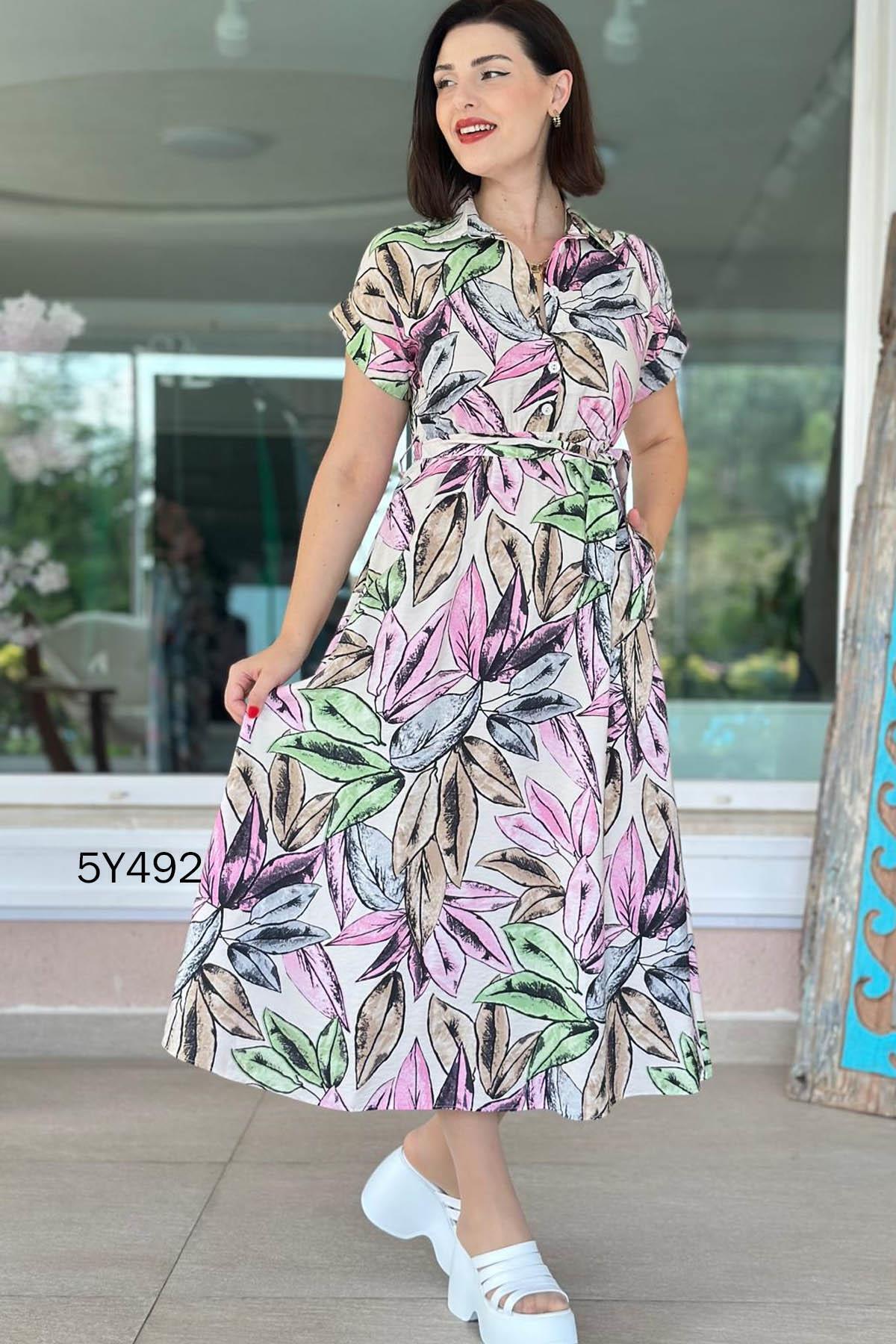 Sıfır Kol Desenli Viskon Elbise 4Y373 Sıfır Kol Desenli Viskon Elbise 4Y373 XL