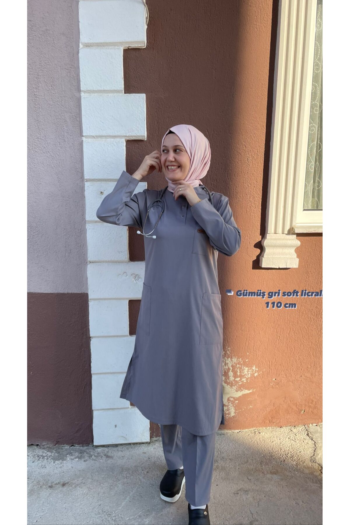 tesettür soft likralı 100 cm doktor ve hemşire forması tesettür soft likralı 100 cm doktor ve hemşire forması ts546353553005 XS