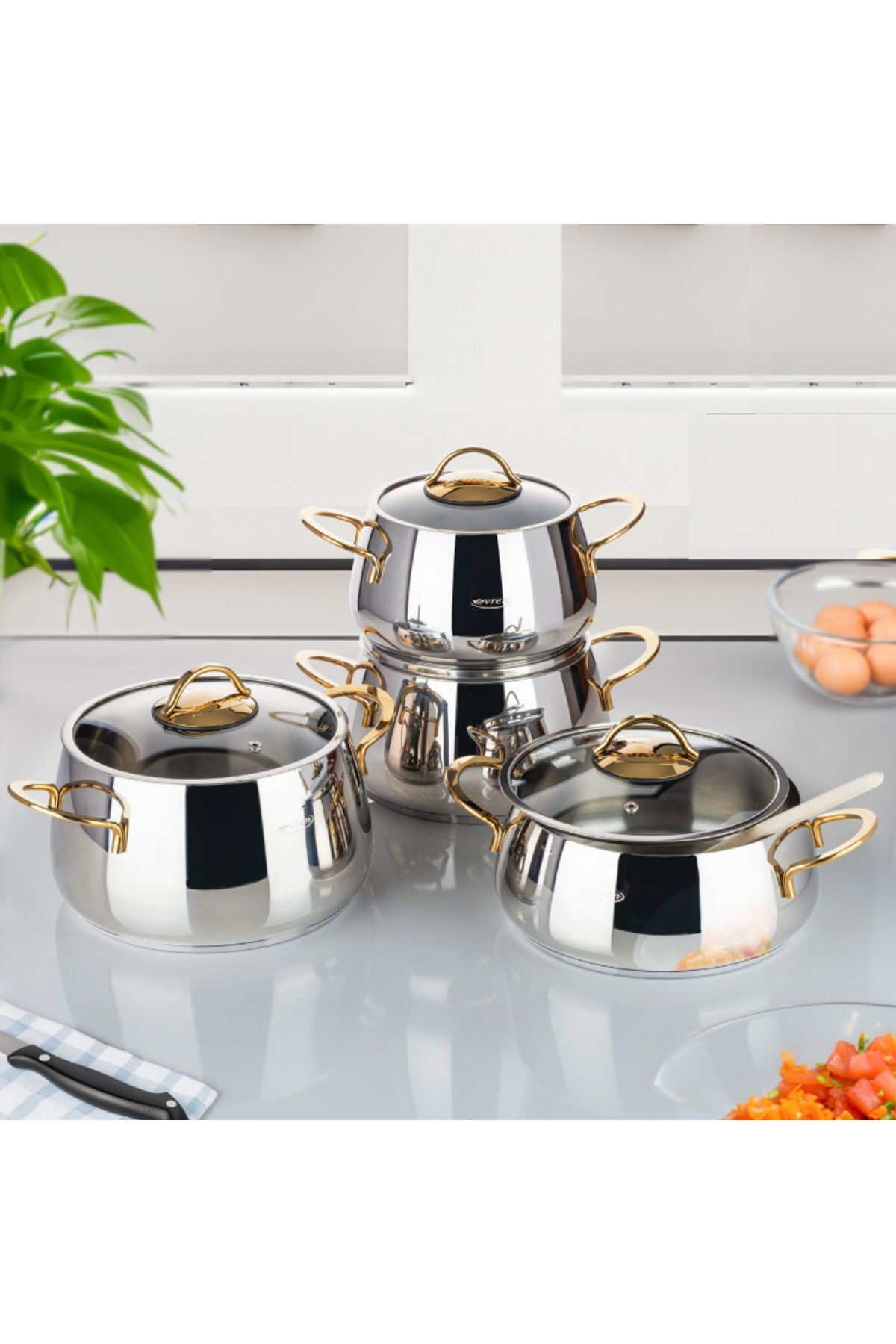 Vitali İndüksiyon Tabanlı 14 Parça Çelik Pişirme Seti Gold Vitali İndüksiyon Tabanlı 14 Parça Çelik Pişirme Seti Gold MRK-187 تک سایز