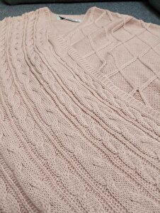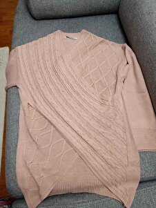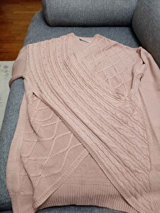 Kruvaze Yaka Yürütme Desenli Saç Örgülü Triko Kazak Tunik Pudra Kruvaze Yaka Yürütme Desenli Saç Örgülü Triko Kazak Tunik Pudra CS-22222 2XL