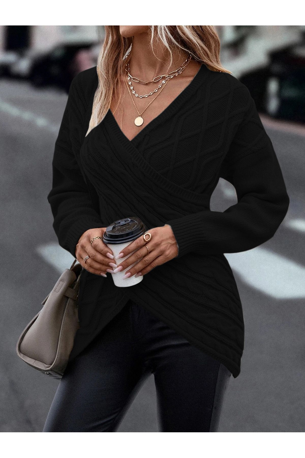 Kruvaze Yaka Yürütme Desenli Saç Örgülü Triko Kazak Tunik ANTRASİT Kruvaze Yaka Yürütme Desenli Saç Örgülü Triko Kazak Tunik ANTRASİT TR-22222 2XL