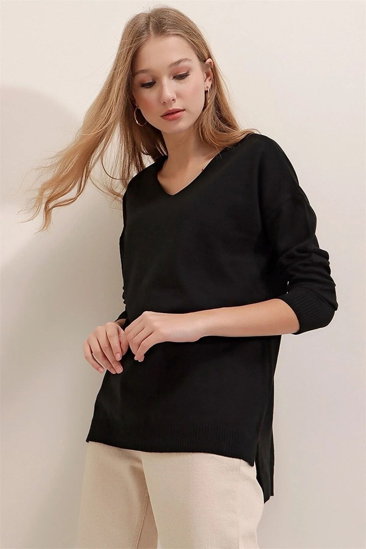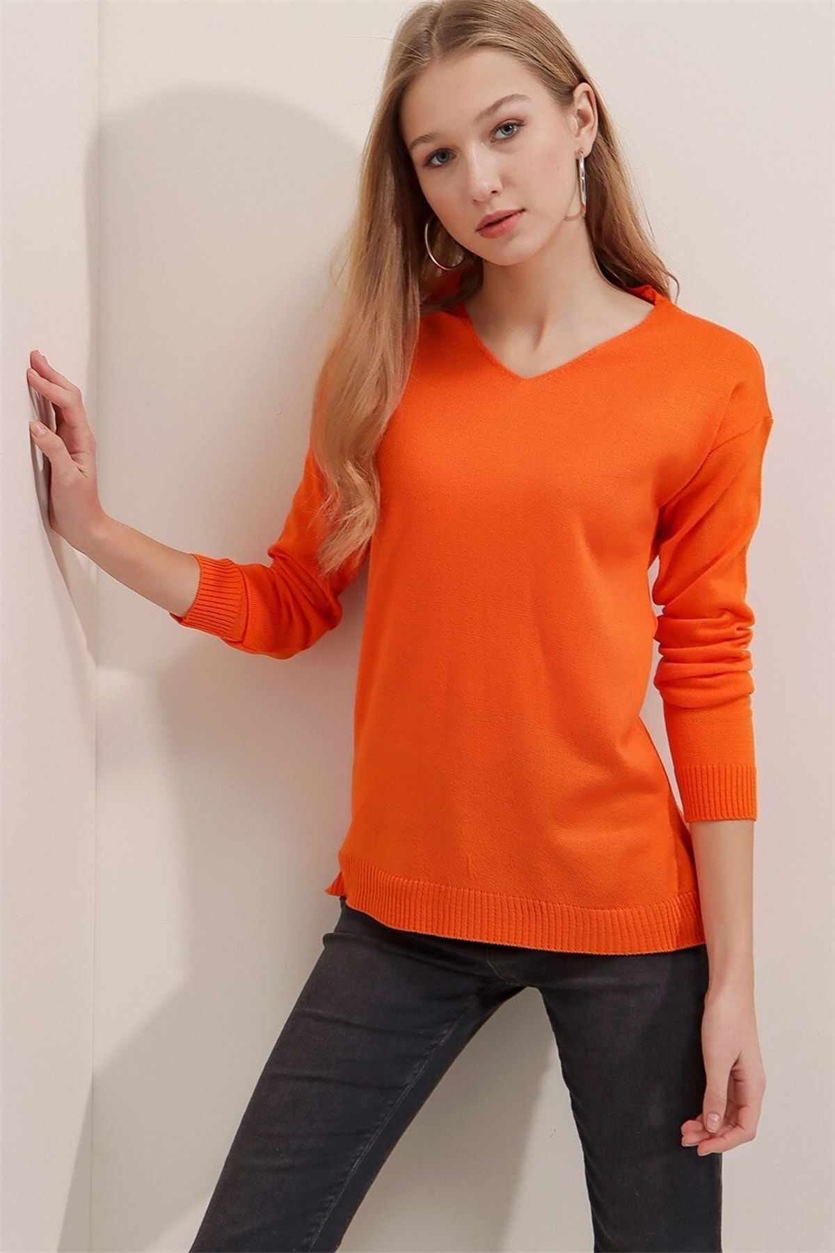 Kadın Indigo V Yaka Mevsimlik Kazak Kadın Indigo V Yaka Mevsimlik Kazak TR-8000-4 XL