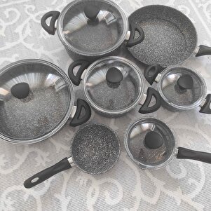 MasterCook Family 12 Prç Granit Tencere Seti Gri MasterCook Family 12 Prç Granit Tencere Seti Gri TAC-8055 تک سایز