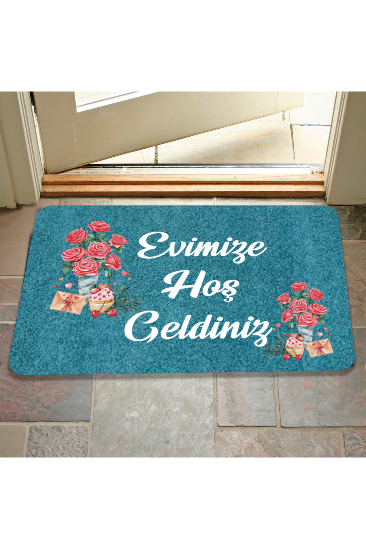 Dijital baskılı Hoş geldiniz yazılı çiçek desenli kapı önü paspası iç ve dış için yıkanabilir Kaymaz Dijital baskılı Hoş geldiniz yazılı çiçek desenli kapı önü paspası iç ve dış için yıkanabilir Kaymaz 4445525556 45 x 70