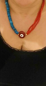 El Yapımı Cam Boncuklu Nazar Boncuğu Kolye, Doğal Taş Mavi ve Turuncu El Yapımı Cam Boncuklu Nazar Boncuğu Kolye, Doğal Taş Mavi ve Turuncu TYCD7E6A0DCF2BB200 45 cm
