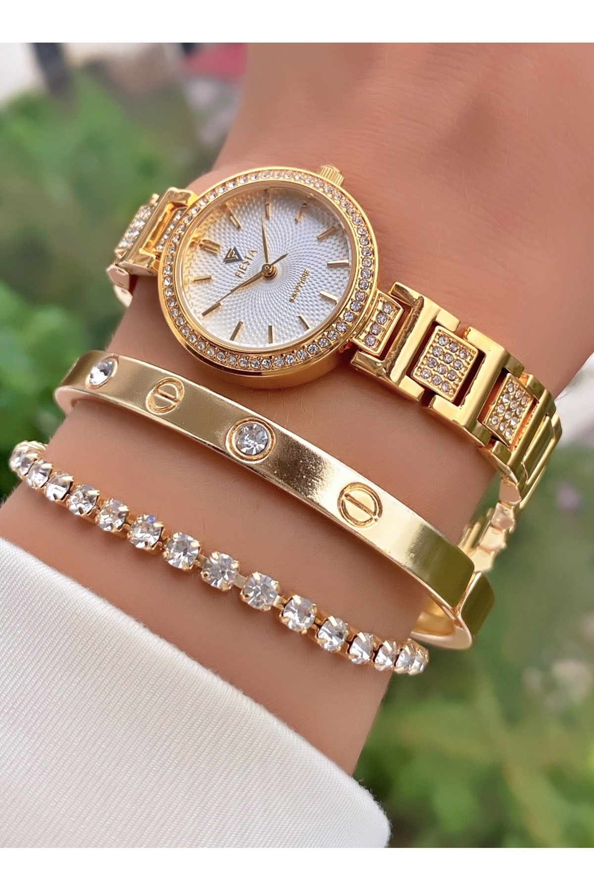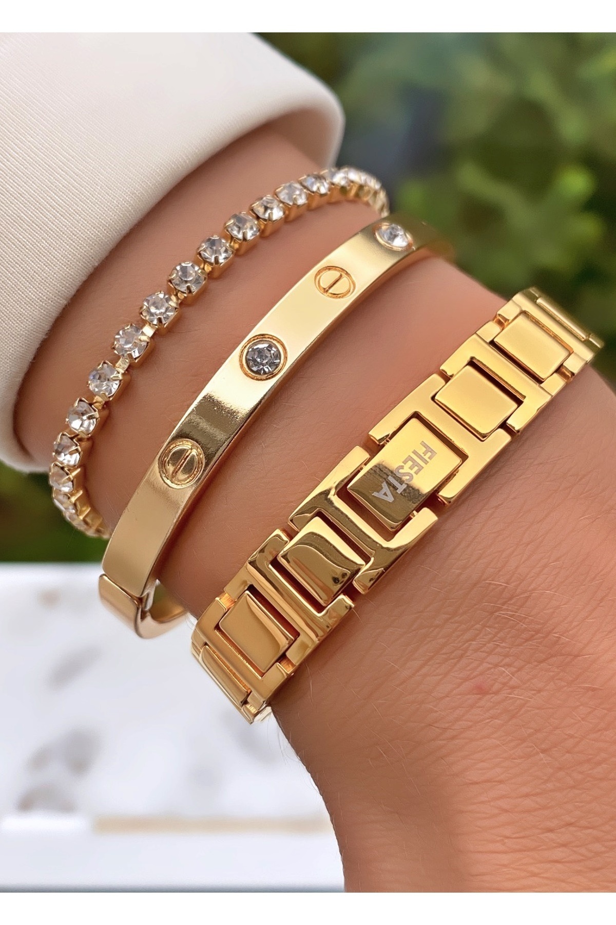 Marka Altın Renk Çelik Kordon Çelik Kasa 2 Yıl Garantili Kadın Kol Saati - Bileklik Hediyeli Marka Altın Renk Çelik Kordon Çelik Kasa 2 Yıl Garantili Kadın Kol Saati - Bileklik Hediyeli 0852FST0299 تک سایز