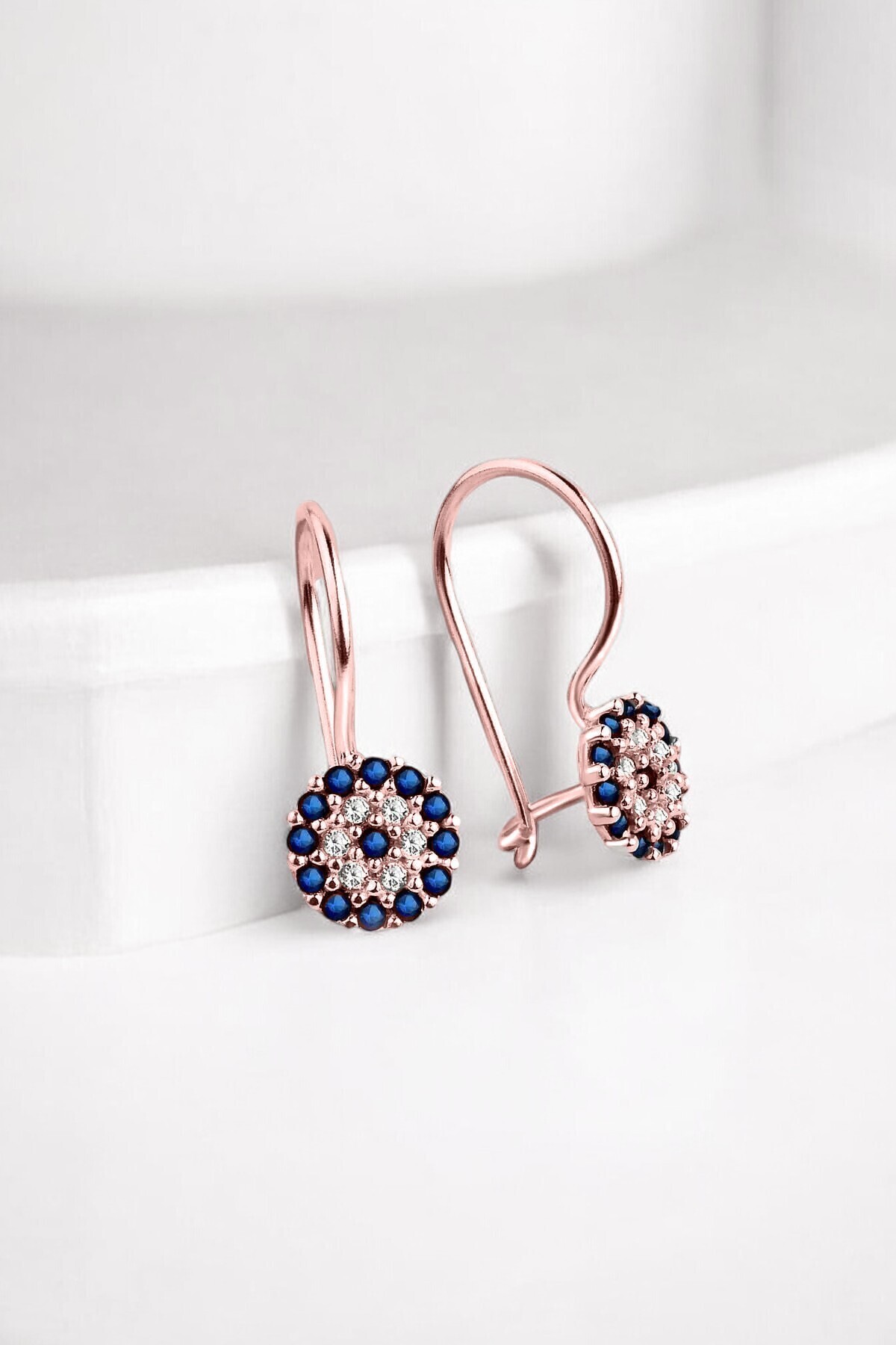 Gümüş 925 Ayar 7 Mm Mengeçli Safir Taşlı Çocuk Nazar Gold Küpe Gümüş 925 Ayar 7 Mm Mengeçli Safir Taşlı Çocuk Nazar Gold Küpe JLX-KPL009 تک سایز