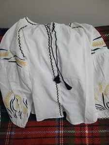 Kadın Beyaz Düğme Detaylı Püsküllü Balon Kol Nakış İşlemeli Pamuklu Gömlek Kadın Beyaz Düğme Detaylı Püsküllü Balon Kol Nakış İşlemeli Pamuklu Gömlek 5763 L
