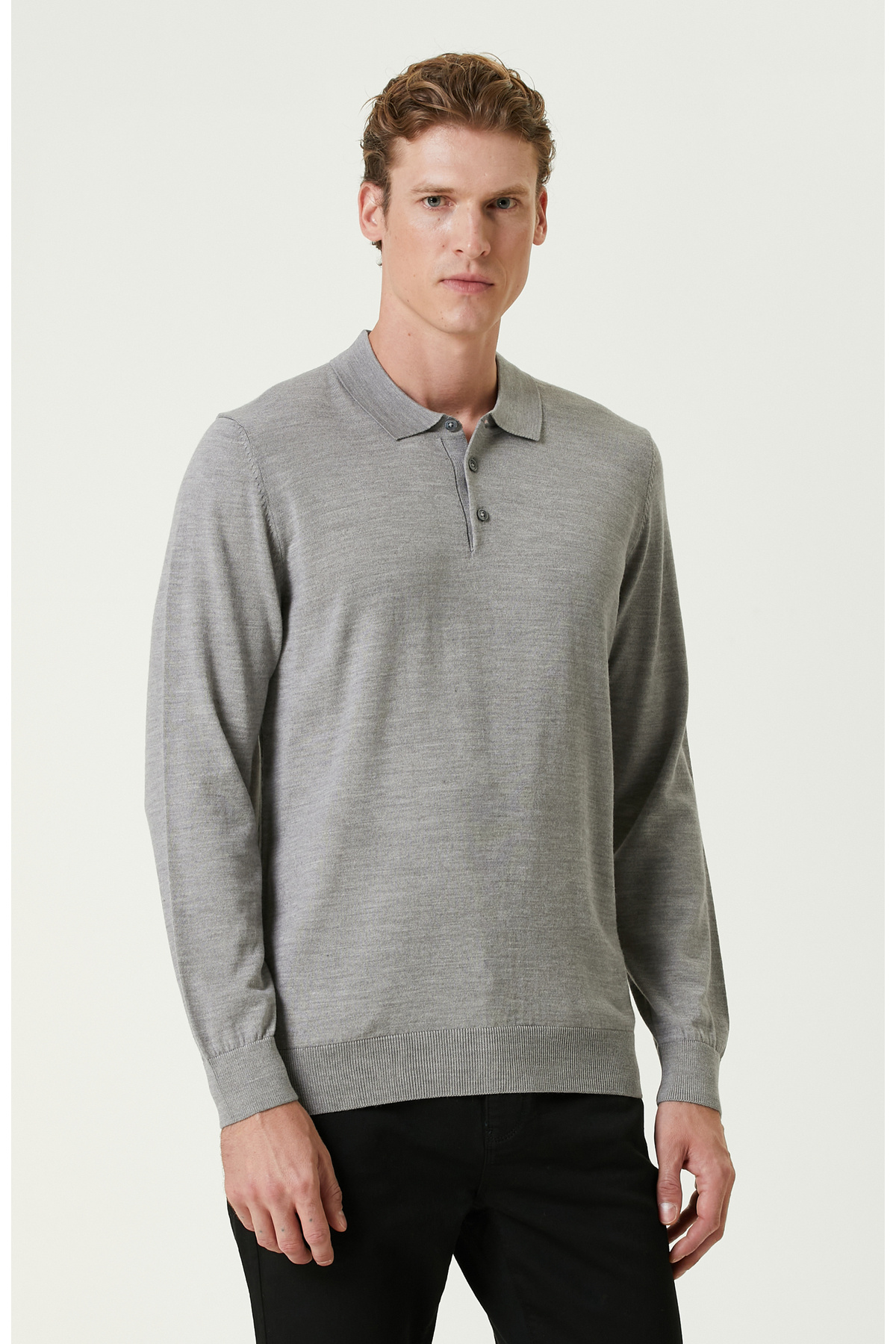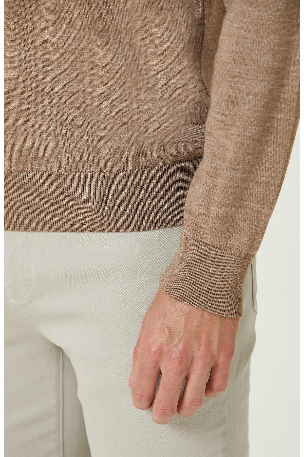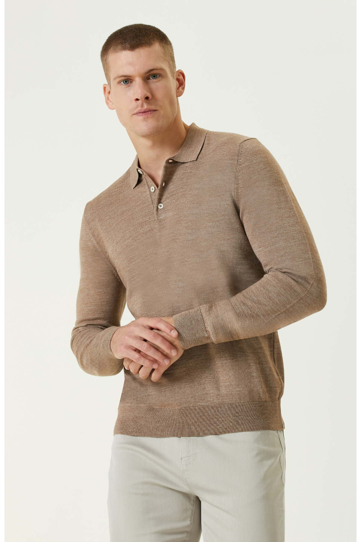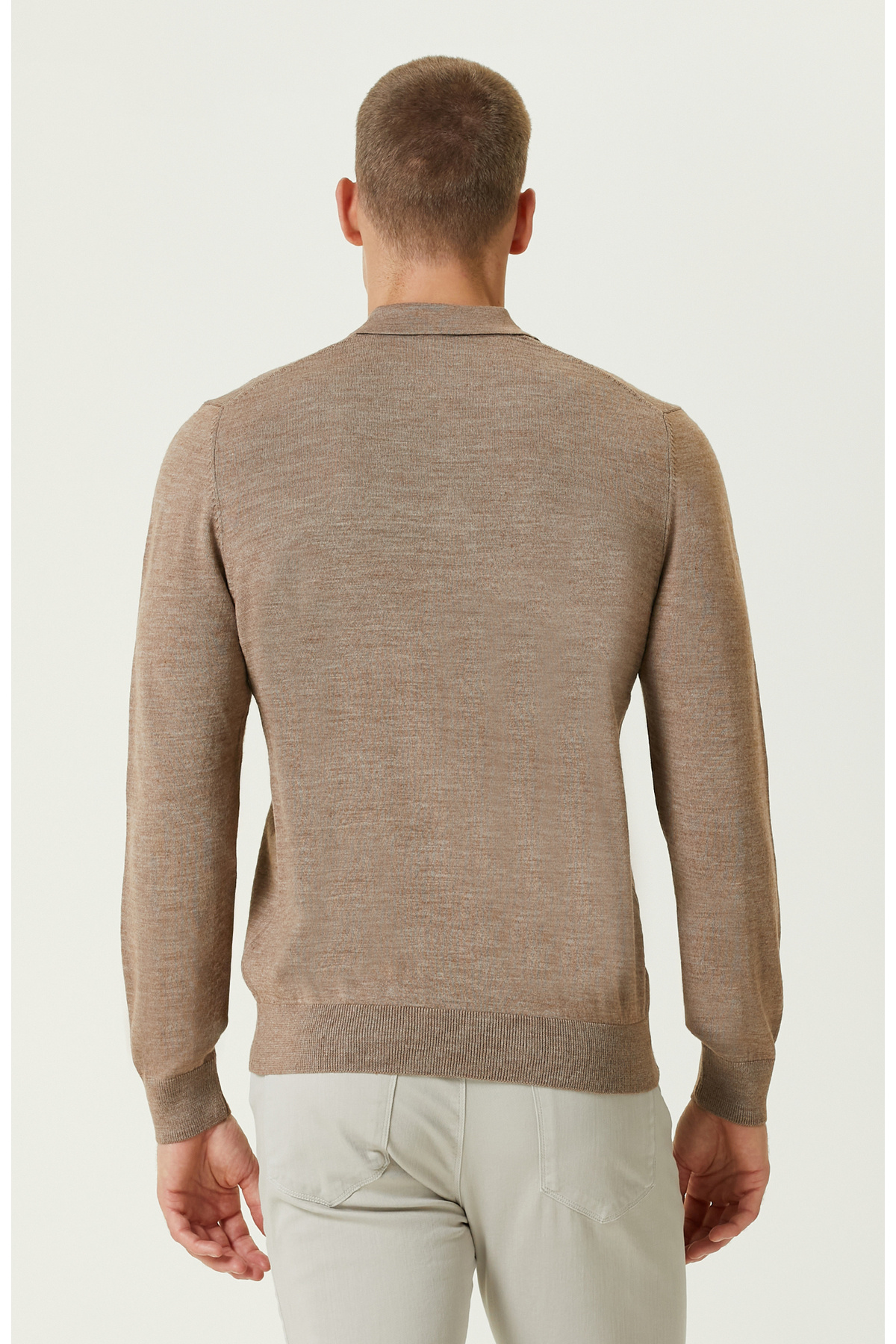 Bej Melanj Polo Yaka Yün Karışımlı Triko Kazak Bej Melanj Polo Yaka Yün Karışımlı Triko Kazak 1091739 2XL