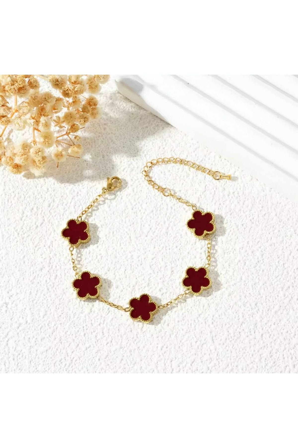 illys Gold Cleef Model Koyu Kırmızı Çelik Yonca Bileklik illys Gold Cleef Model Koyu Kırmızı Çelik Yonca Bileklik BILLUJ0000037 تک سایز