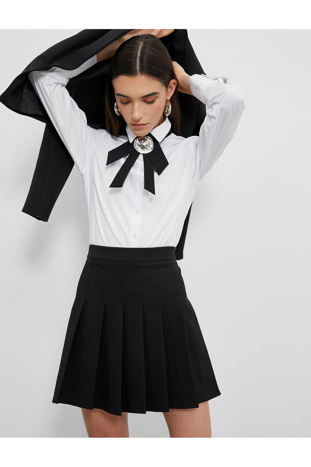 Fırfırlı Dik Yaka Gömlek Fiyonk Bağlama Detaylı Krep Kumaş Fırfırlı Dik Yaka Gömlek Fiyonk Bağlama Detaylı Krep Kumaş 5WAK60048UW 46
