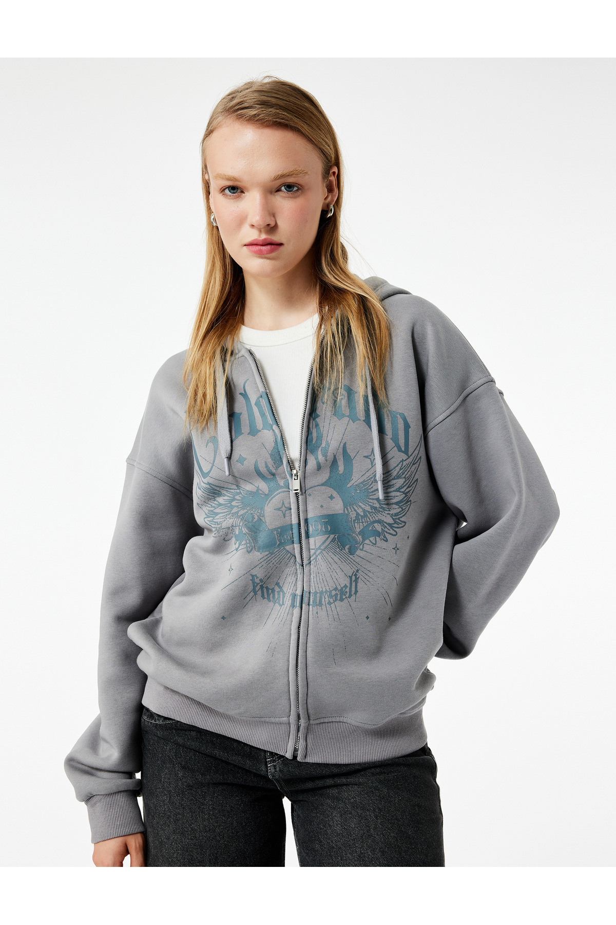 Crop Sweatshirt Fermuarlı Kapüşonlu Baskılı Cep Detaylı Şardonlu Crop Sweatshirt Fermuarlı Kapüşonlu Baskılı Cep Detaylı Şardonlu 5WAL10439IK XL