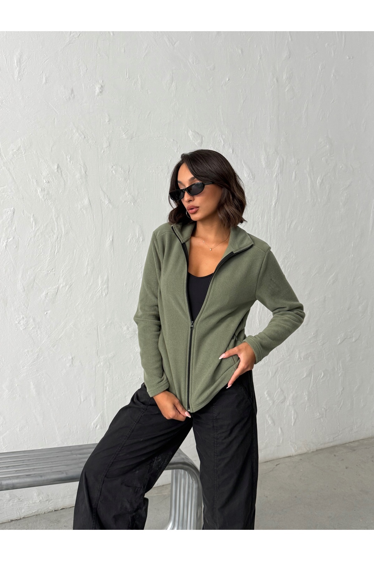 Kadın Beyaz Yeşil Dik Yaka Yarım Fermuarlı Polar Sweat Kadın Beyaz Yeşil Dik Yaka Yarım Fermuarlı Polar Sweat LVREGLAN XL