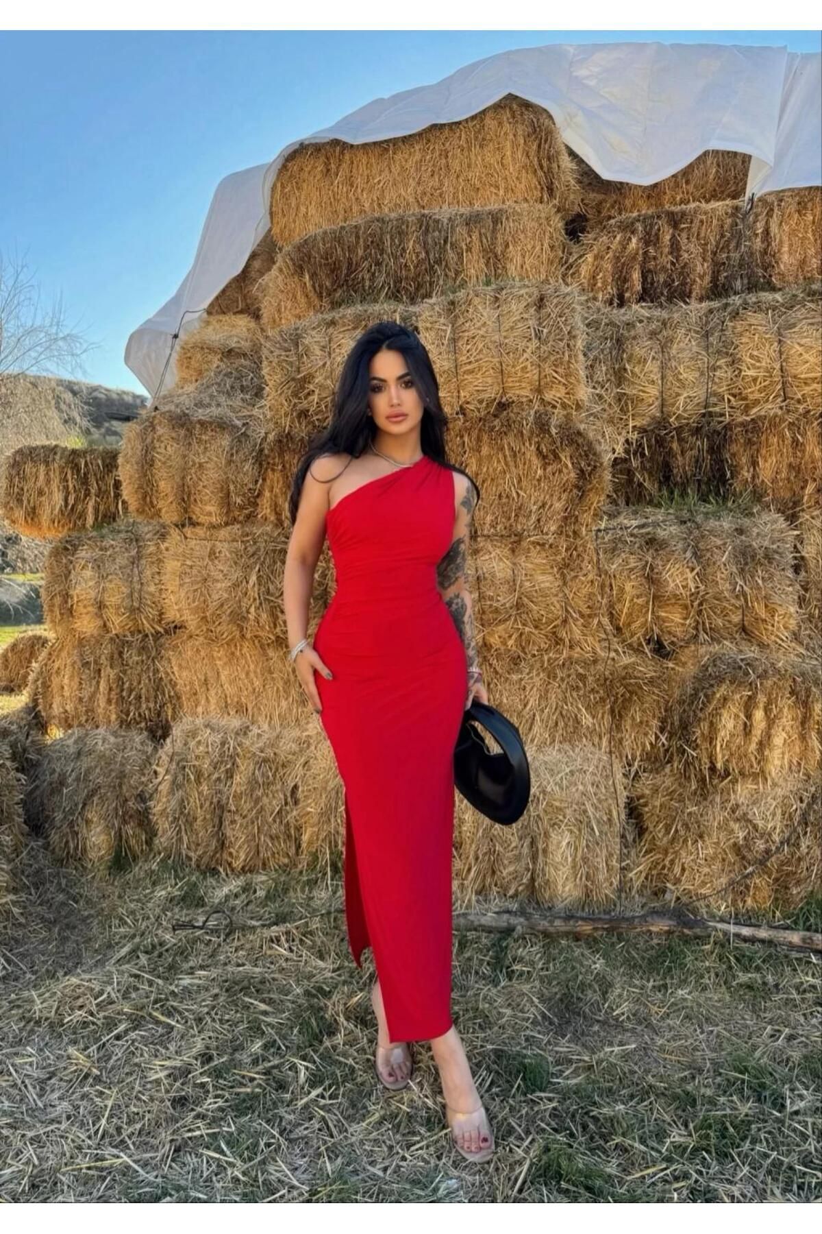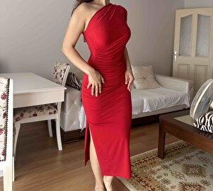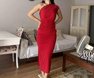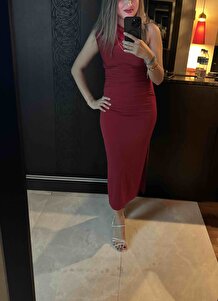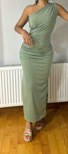 Kadın Trend Yırtmaçlı Sandy Omuz Detay Drapeli Elbise Kadın Trend Yırtmaçlı Sandy Omuz Detay Drapeli Elbise G609 L