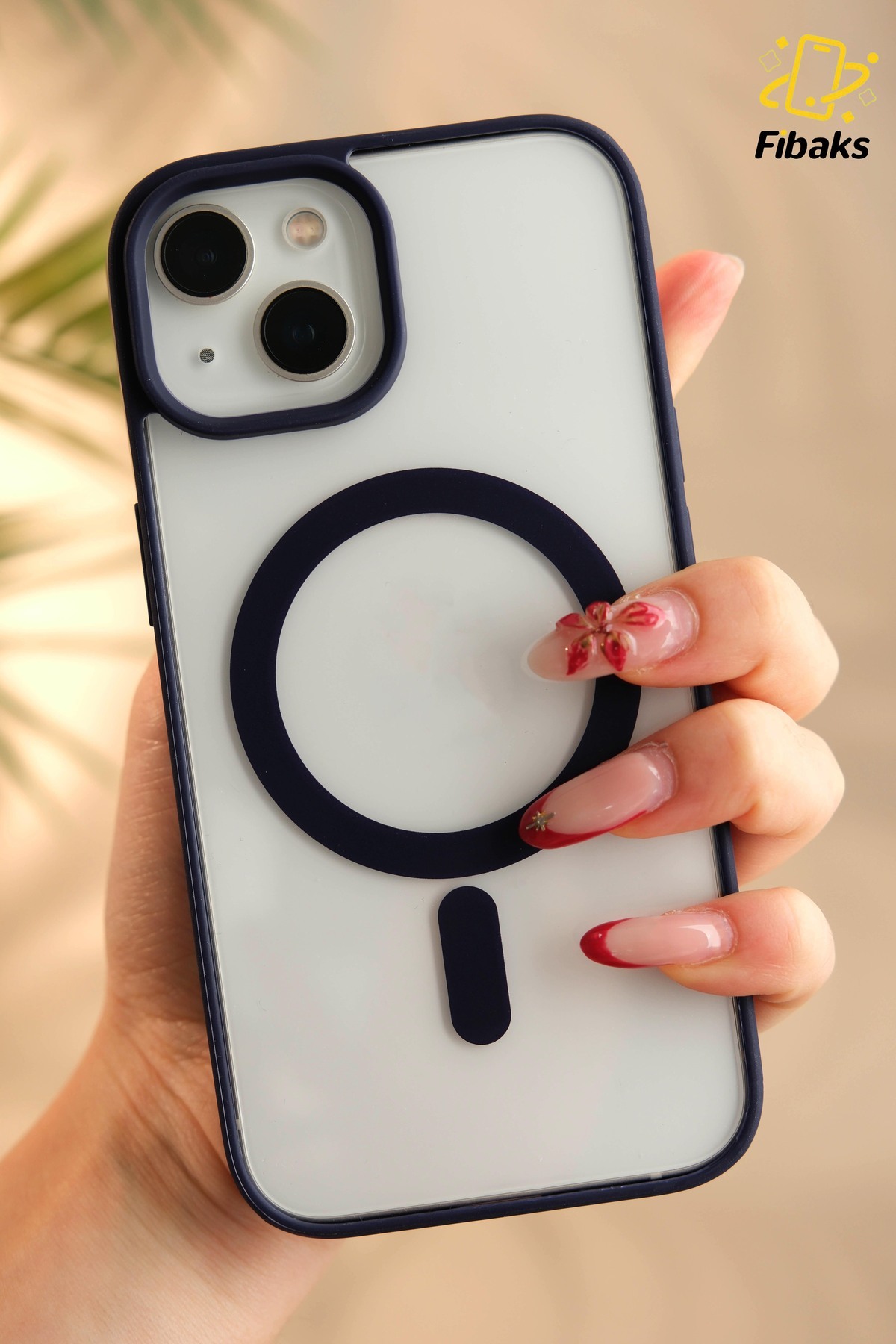 iPhone 15 Uyumlu Kamera Çıkıntılı Şarj Destekli Kenarı Renkli Hassas Butonlu Magsafe Kılıf iPhone 15 Uyumlu Kamera Çıkıntılı Şarj Destekli Kenarı Renkli Hassas Butonlu Magsafe Kılıf 15-KromMagsafe تک سایز