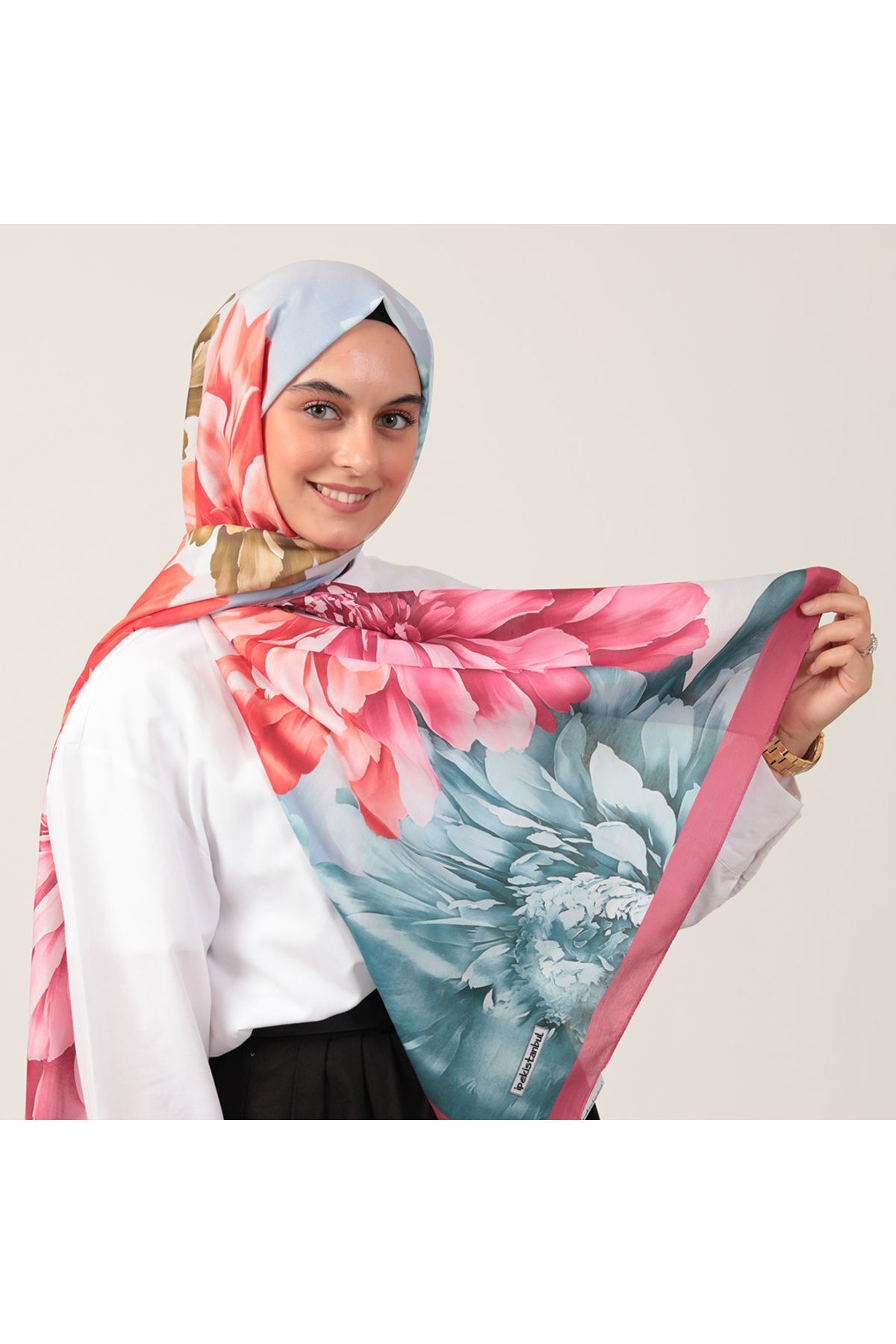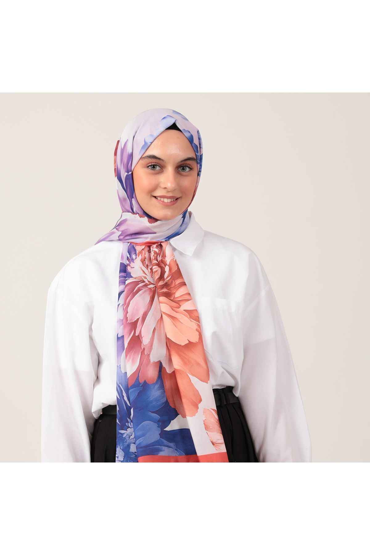 Pamuk İpek Şal - Lotus Desen - Saks Kırmızı Pamuk İpek Şal - Lotus Desen - Saks Kırmızı 12661 70 x 200
