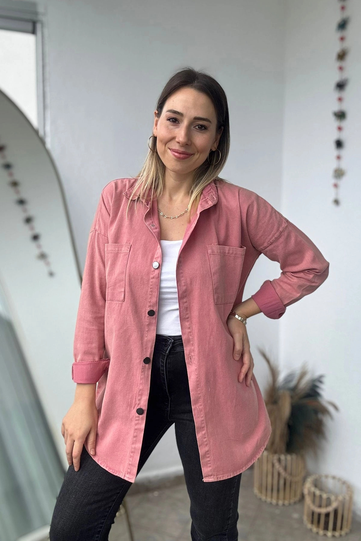 Oversize Başak Nakış Desen Sarı Gabardin Gömlek Oversize Başak Nakış Desen Sarı Gabardin Gömlek CM-478 L