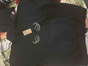 Unisex İskelet Taş Baskılı Sweatshirt Siyah Unisex İskelet Taş Baskılı Sweatshirt Siyah Trendiz693 XL/2XL