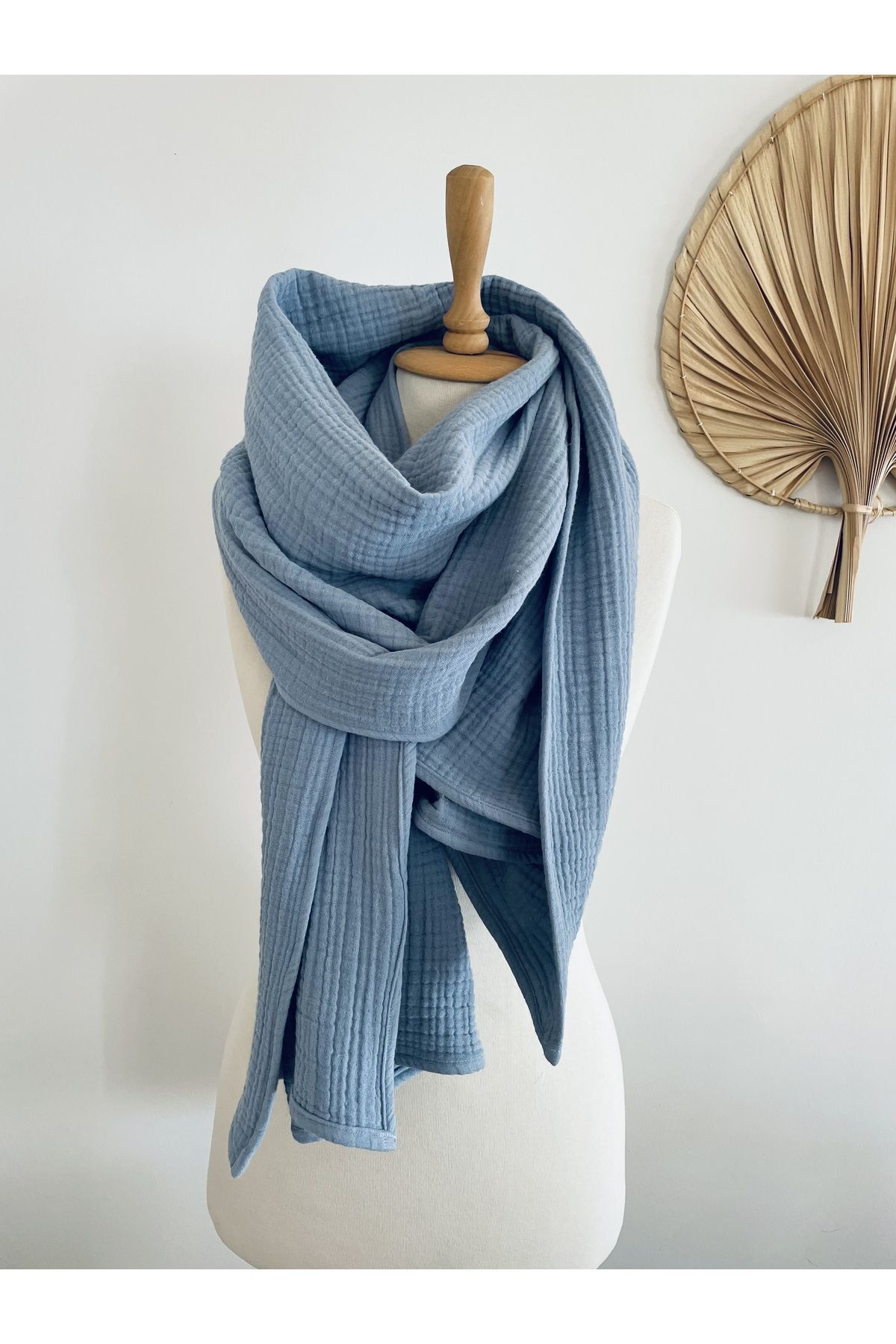 Çizgili Pamuk Atkı Yumuşacık Muslin Şal Unisex Mavi Beyaz Çizgili Pamuk Atkı Yumuşacık Muslin Şal Unisex Mavi Beyaz ŞRMŞ_MB 60 x 190
