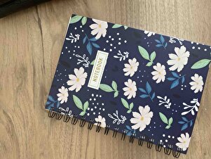 A5 Spiralli Kalın Kapaklı Çizgili Not Defteri, 80 Yaprak 160 Sayfa, Beyaz Çiçekli A5 Spiralli Kalın Kapaklı Çizgili Not Defteri, 80 Yaprak 160 Sayfa, Beyaz Çiçekli ELD-OD-00101 تک سایز