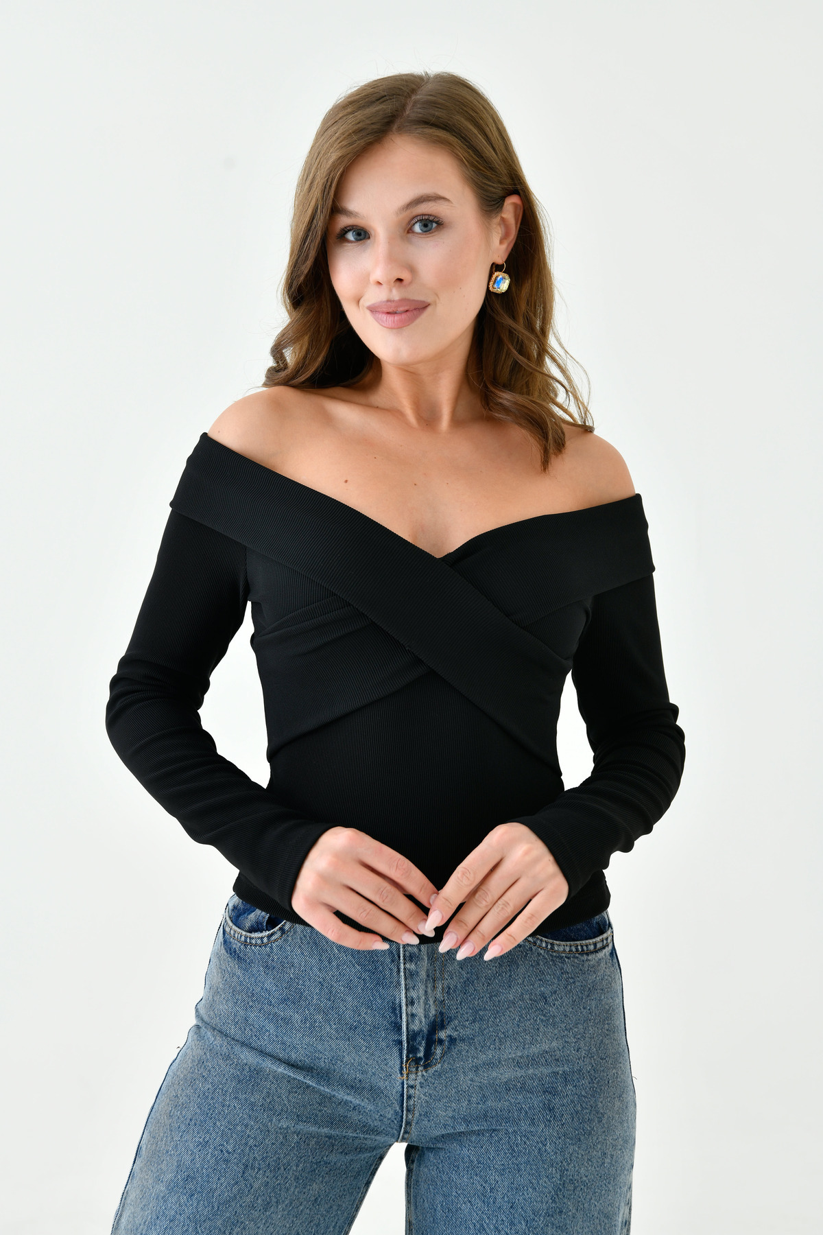 Kruvaze Yaka Drapeli Bluz Kruvaze Yaka Drapeli Bluz syhblzkrv4587 L