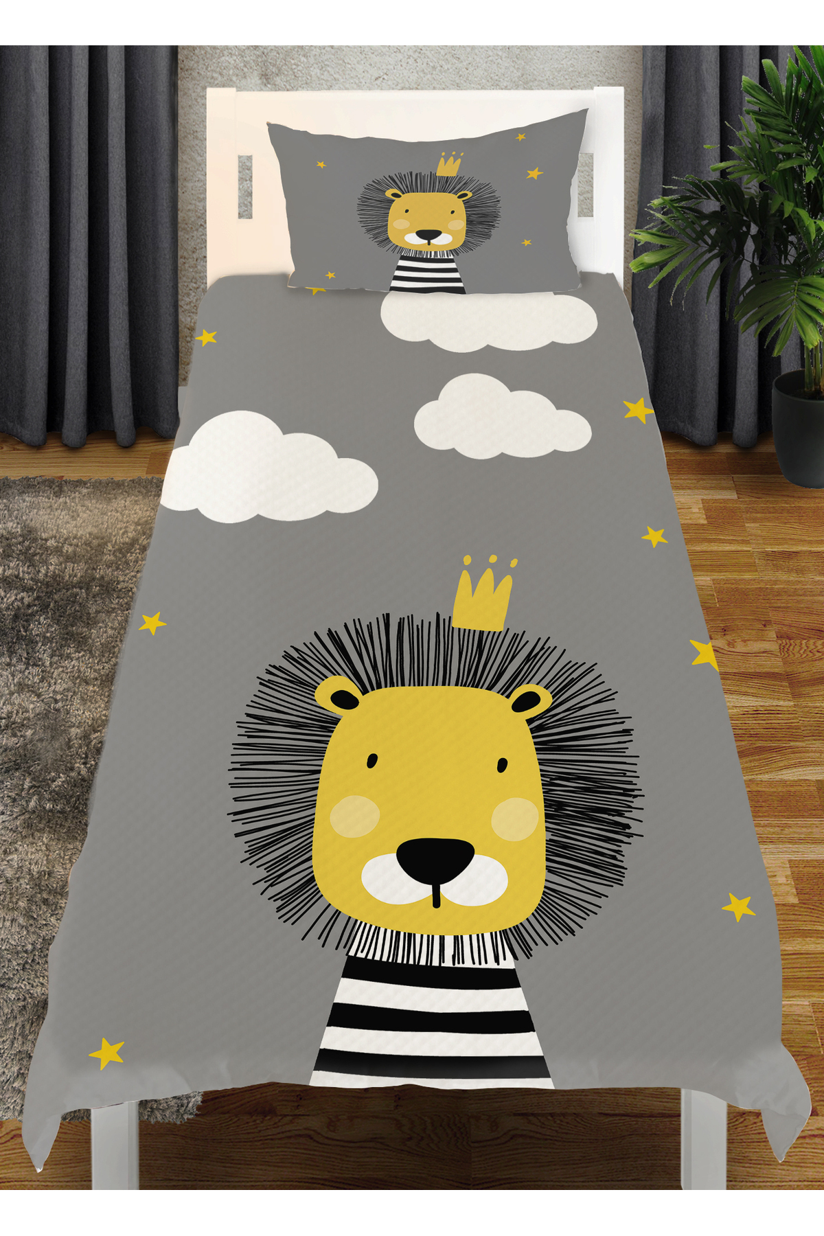 Aslan Kral Desenli Tek Kişilik Çocuk Pike Takımı TLAP-094 Aslan Kral Desenli Tek Kişilik Çocuk Pike Takımı TLAP-094 تک سایز