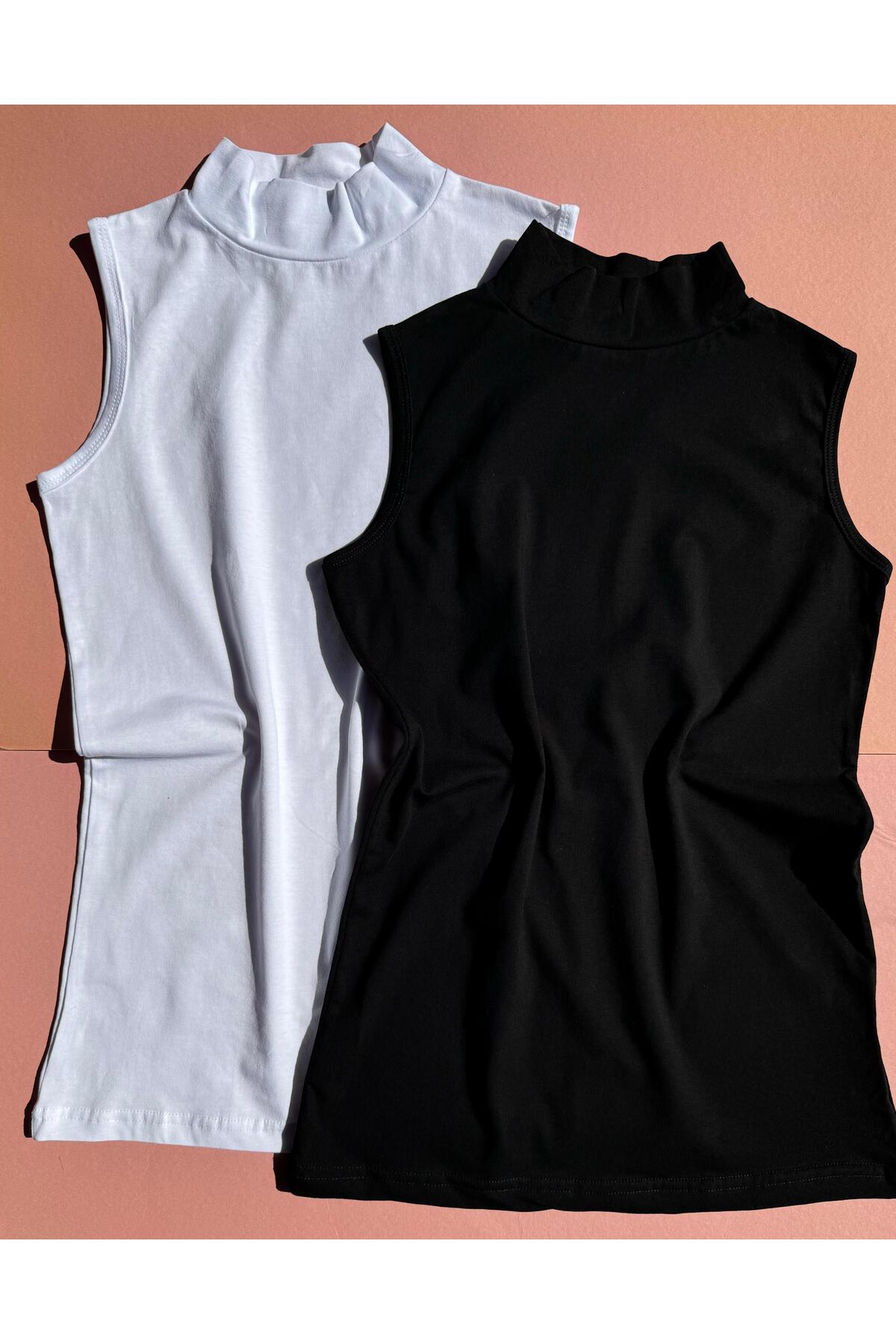 Yarım Boğazlı, 2'li Siyah ve Ten Renk Balıkçı Yaka Kolsuz Kurtarıcı Kadın Atlet-Body Yarım Boğazlı, 2'li Siyah ve Ten Renk Balıkçı Yaka Kolsuz Kurtarıcı Kadın Atlet-Body 62G36 3XL