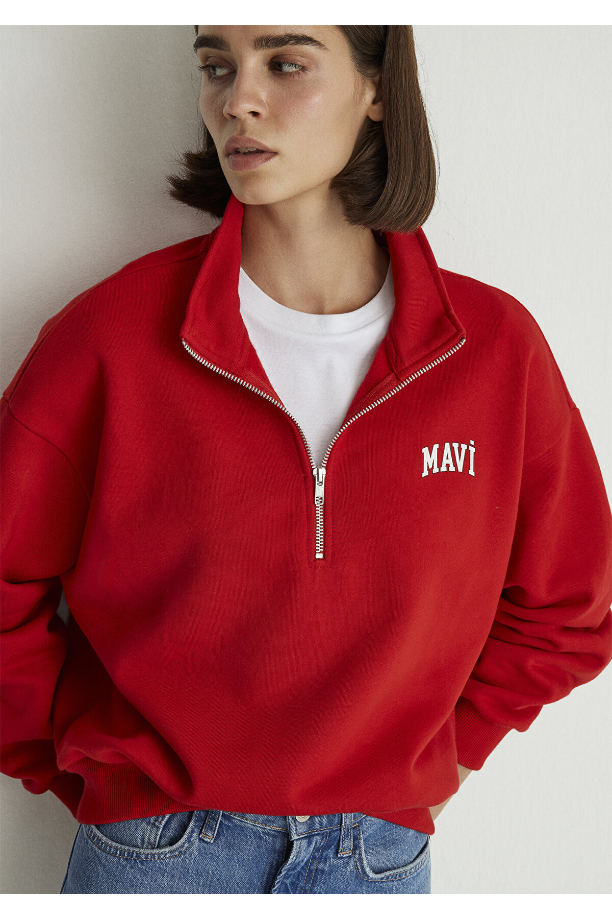 Logo Baskılı Yarı Fermuarlı Kırmızı Sweatshirt 1S10179-86417 Logo Baskılı Yarı Fermuarlı Kırmızı Sweatshirt 1S10179-86417 L