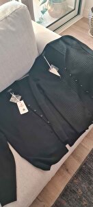 Kadın V Yaka Dikişsiz Hırka Siyah Kadın V Yaka Dikişsiz Hırka Siyah 24181 XL