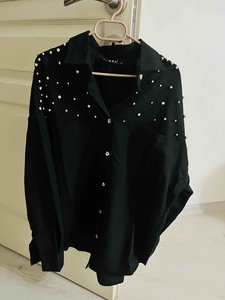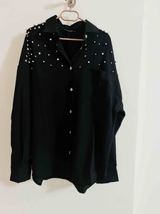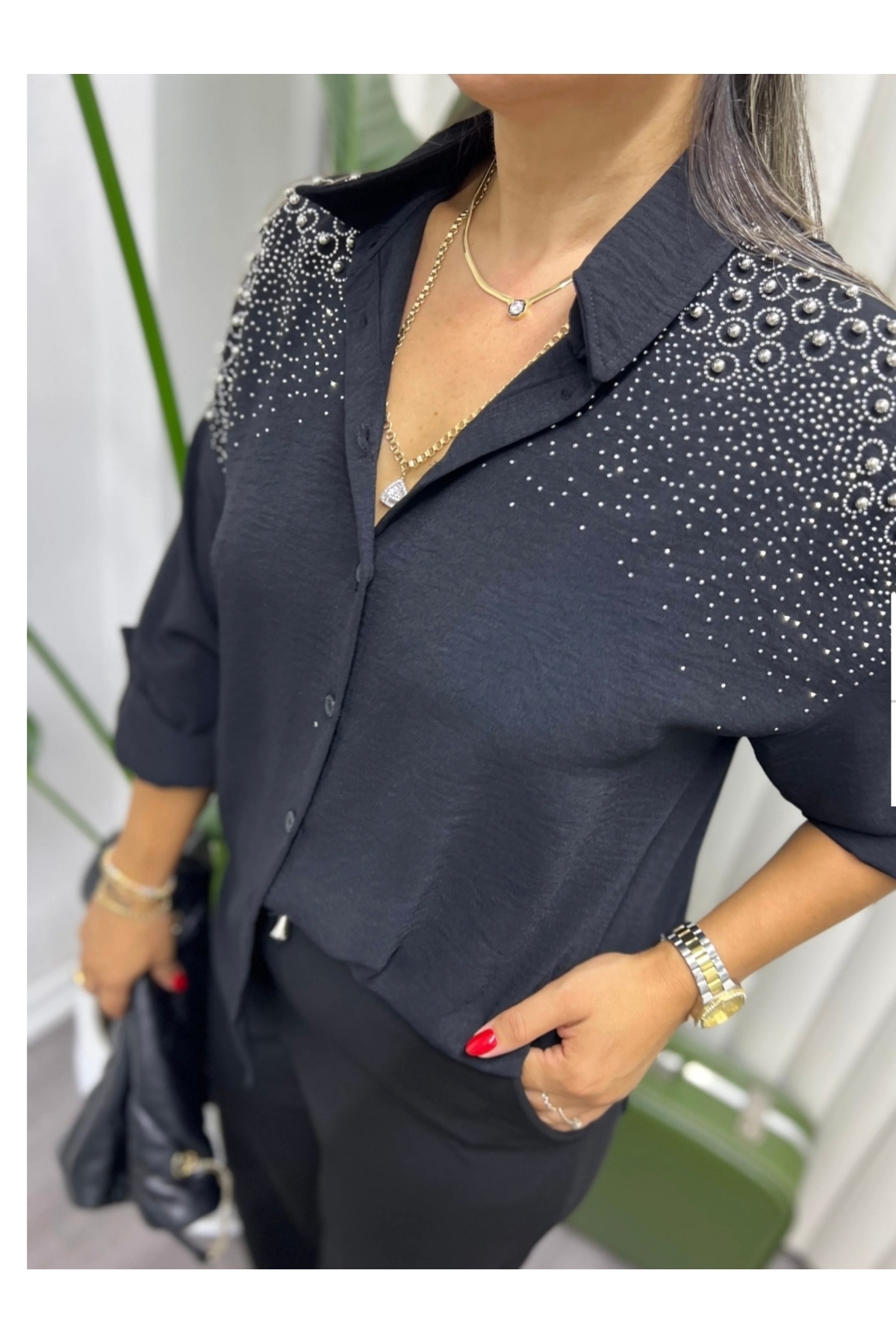 Siyah – Kadın Taşlı Uzun Kollu Poplin Gömlek Siyah – Kadın Taşlı Uzun Kollu Poplin Gömlek 24y0027 L