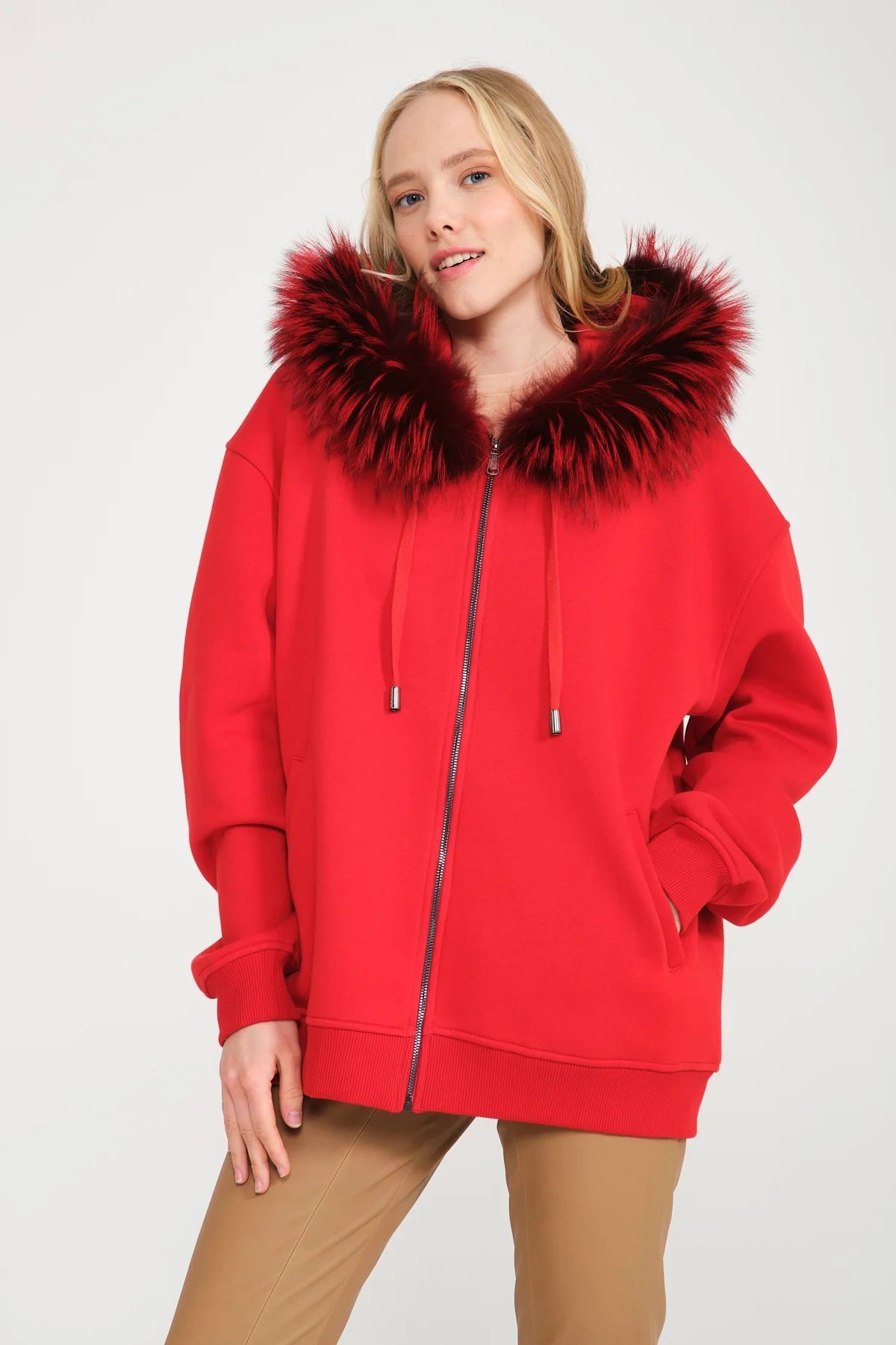 Kadın Kapüşonu Kürklü Fermuarlı Yün Hırka Siyah Kadın Kapüşonu Kürklü Fermuarlı Yün Hırka Siyah 24082 XL