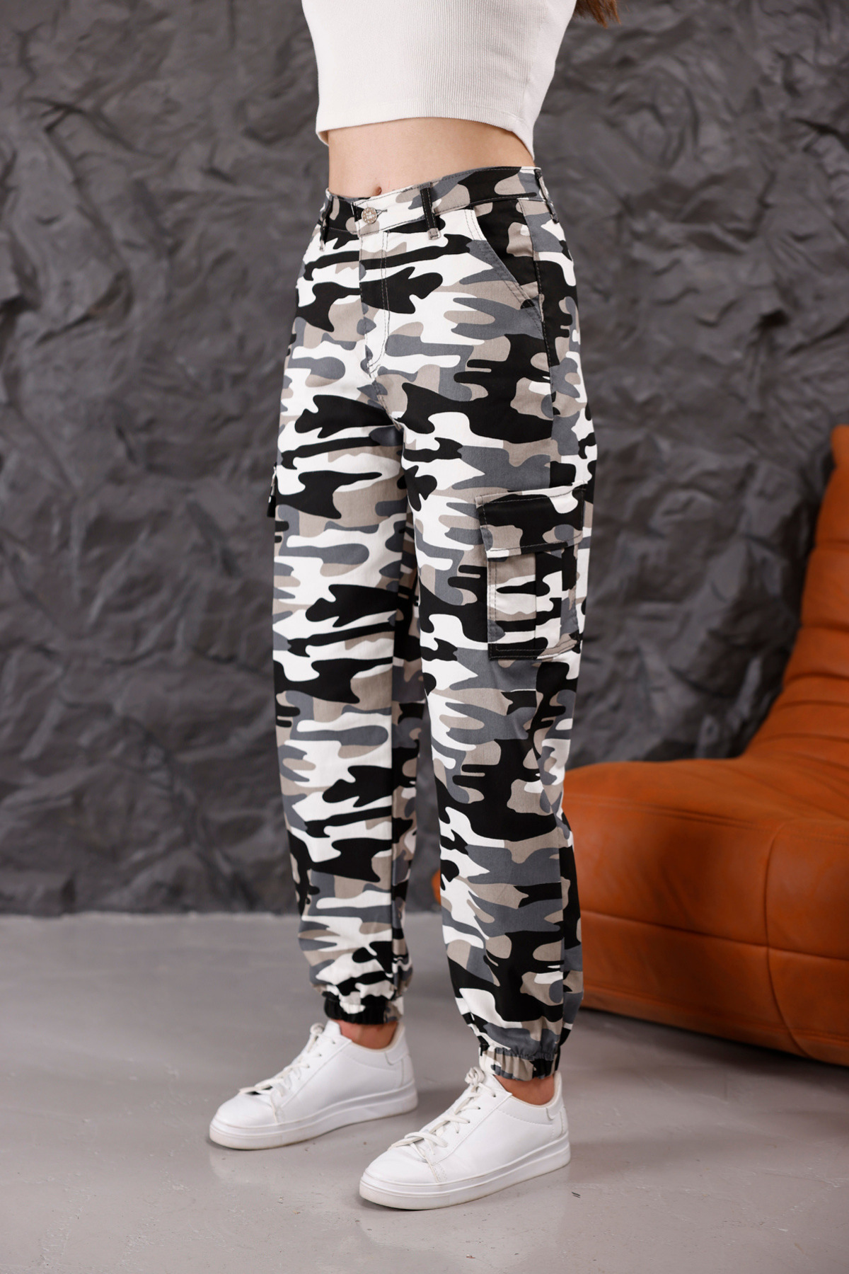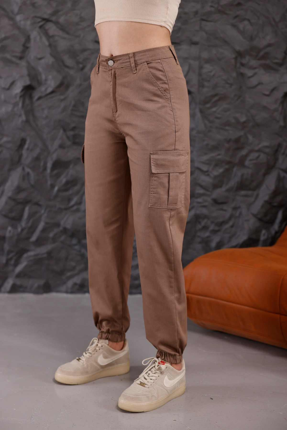Kadın Yüksek Bel Paçası Lastikli Jogger Kargo Cep Pantolon Kadın Yüksek Bel Paçası Lastikli Jogger Kargo Cep Pantolon ALN00001700 42