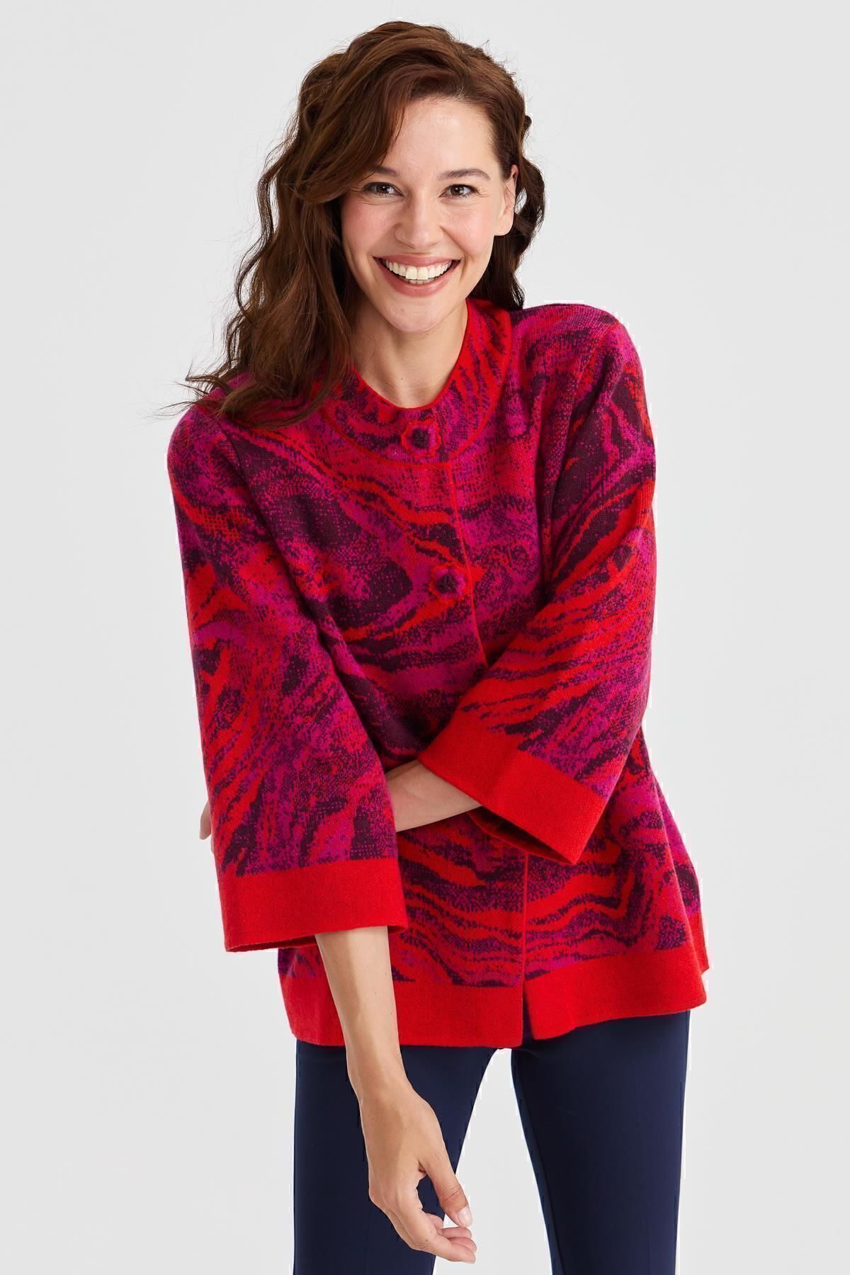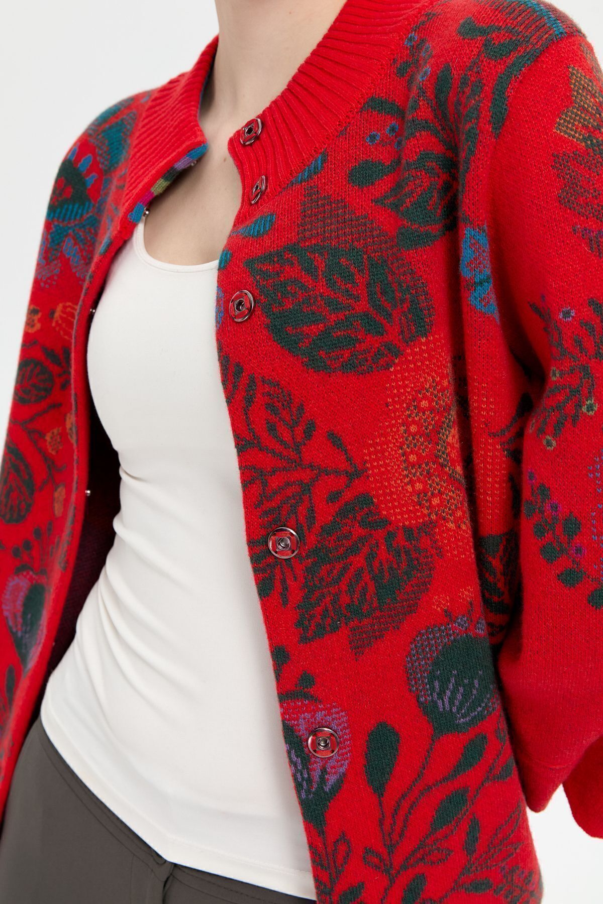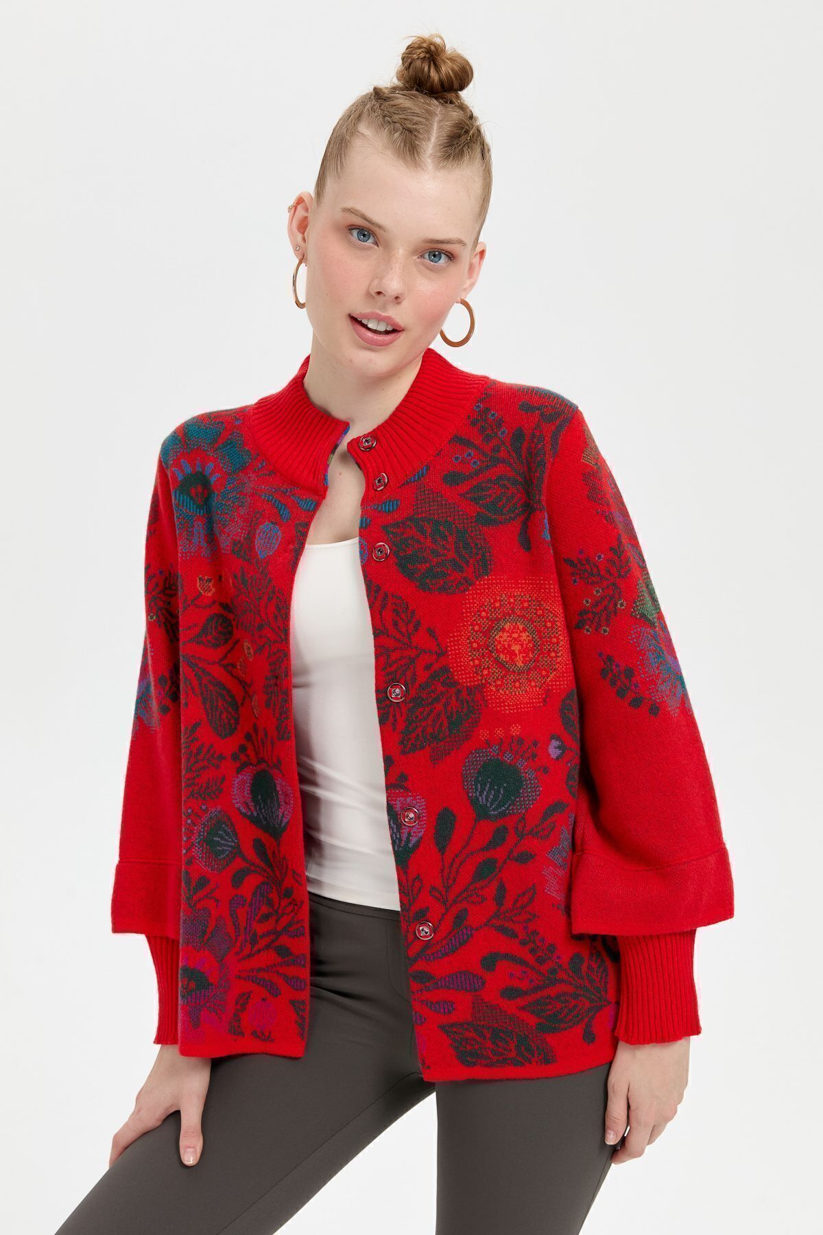 Kadın Dik Yaka Önü Renkli Çiçekli Kısa Yün Ceket Mercan Kadın Dik Yaka Önü Renkli Çiçekli Kısa Yün Ceket Mercan 24050 XL