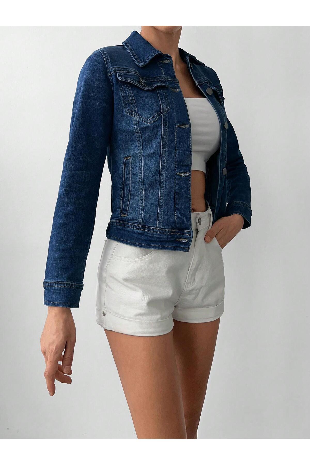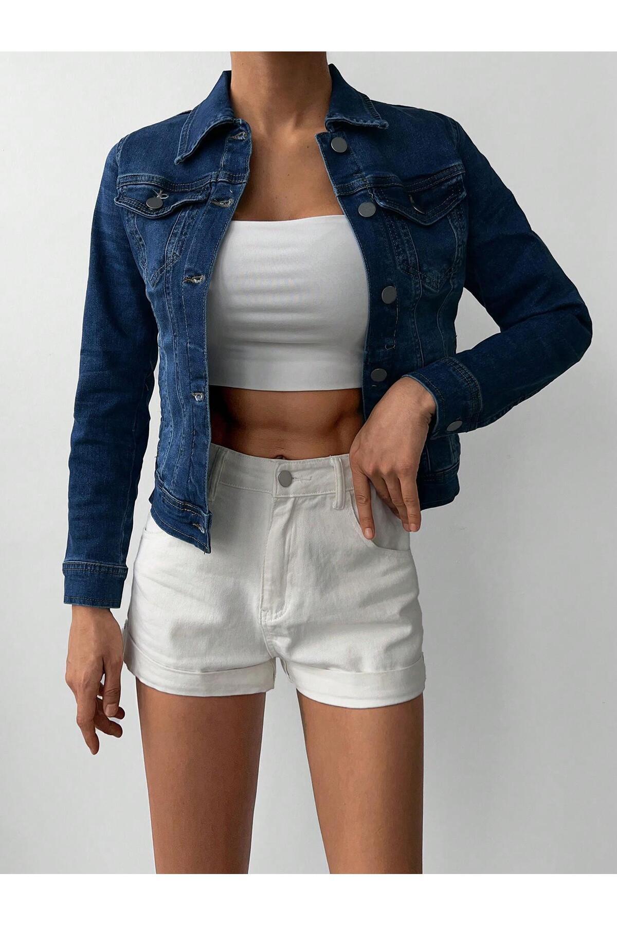 Kadın Lacivert Crop Kot Ceket Kadın Lacivert Crop Kot Ceket 1035PLST 2XS