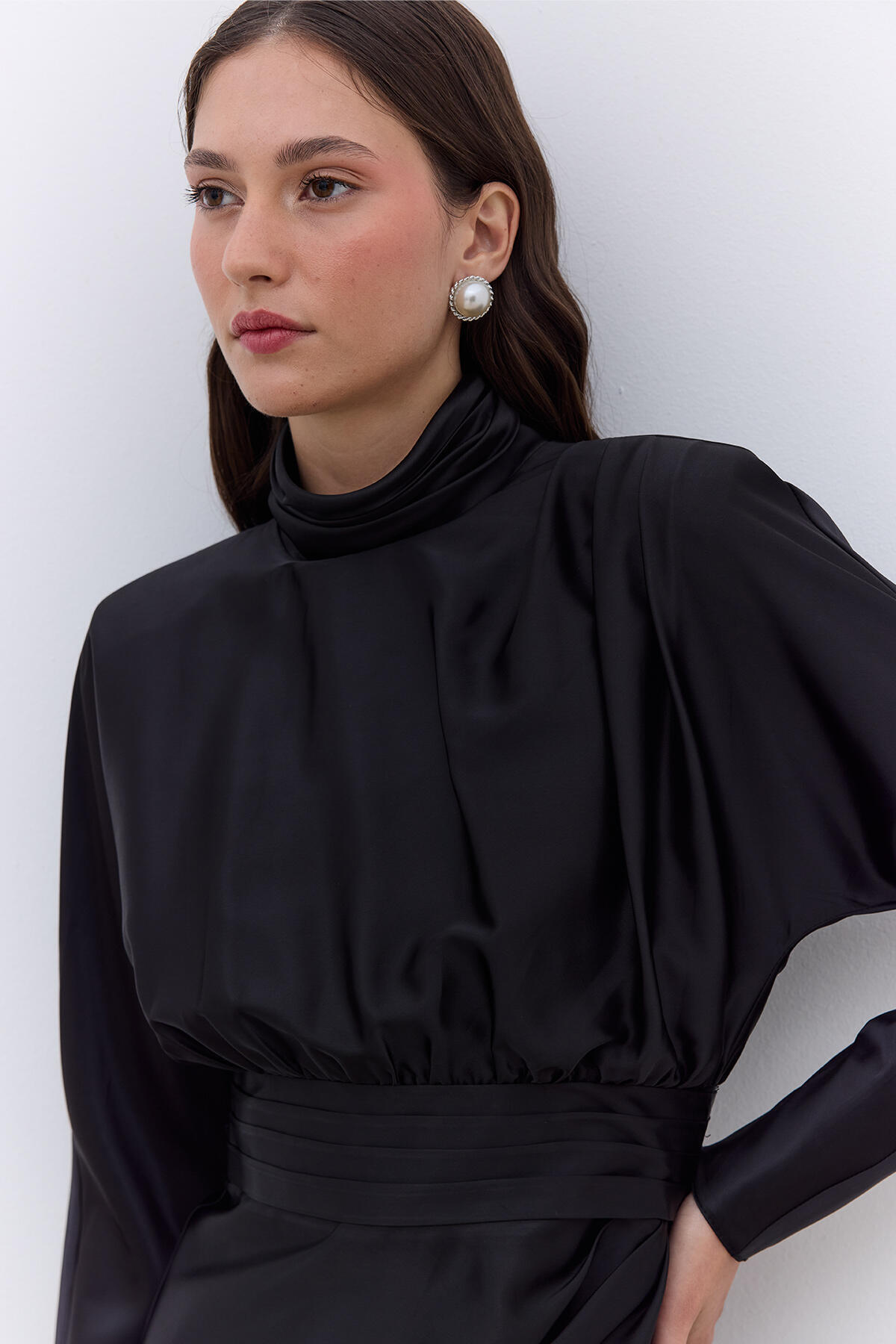 SATEN OMUZ DRAPELİ ABİYE ELBİSE SİYAH SATEN OMUZ DRAPELİ ABİYE ELBİSE SİYAH M-4315 42