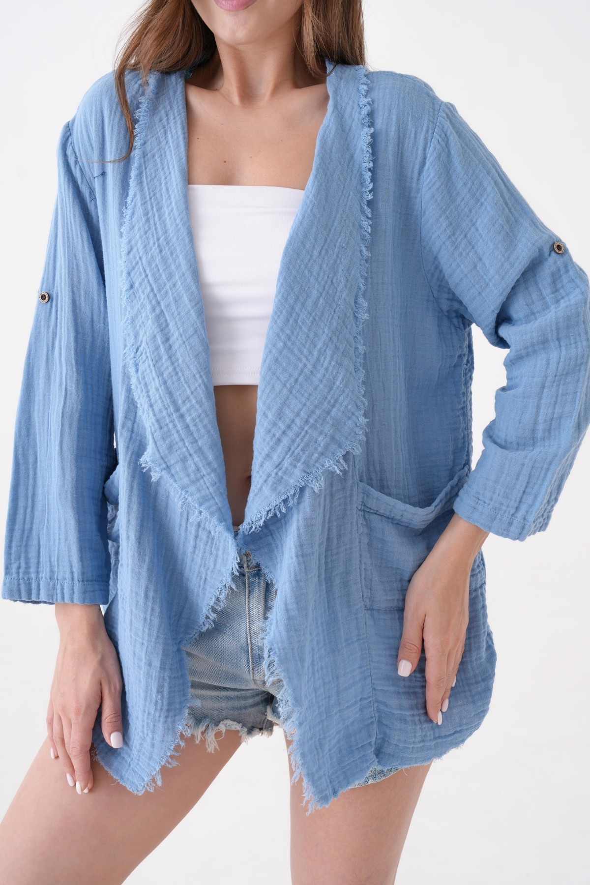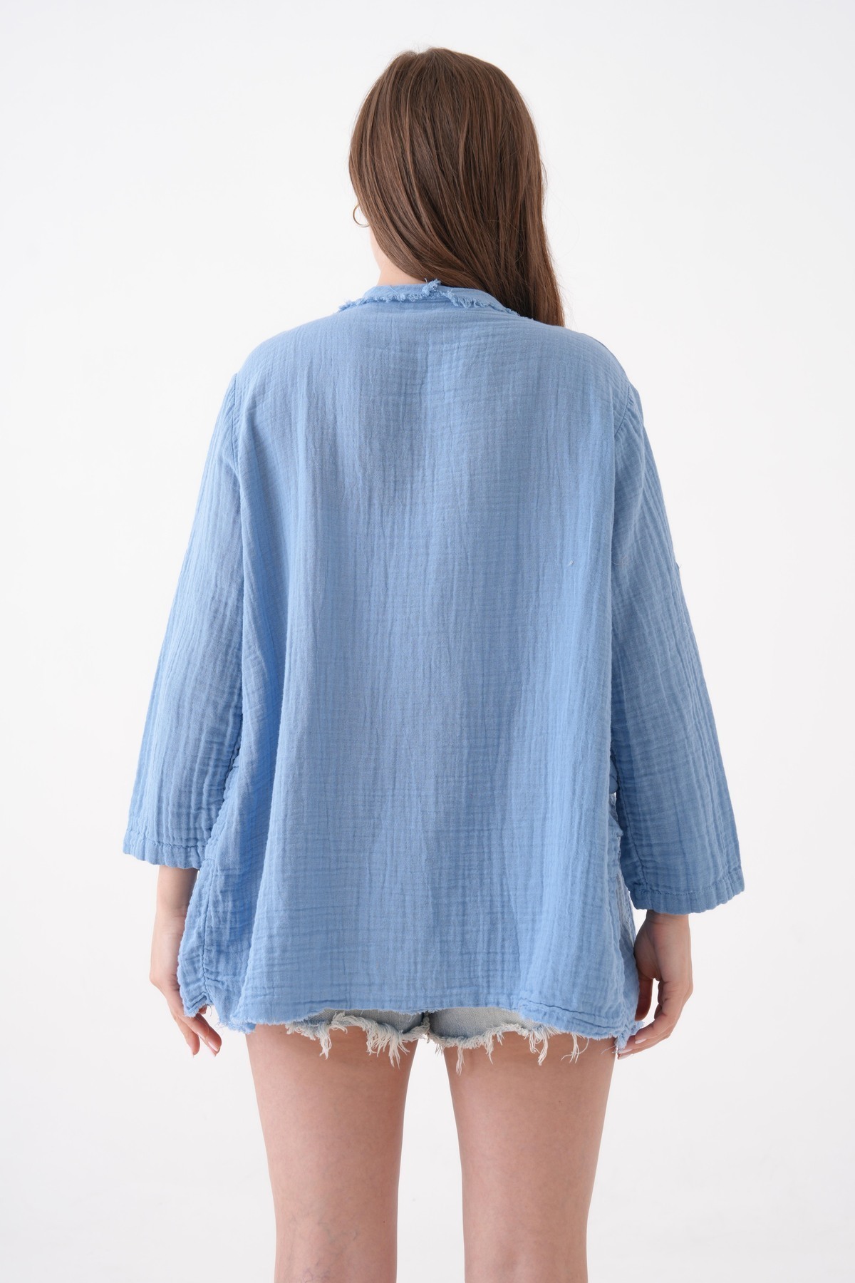 Kadın %100 Pamuk Saçaklı Katlanabilir Kol Yazlık Müslin Ceket Mg003 Kadın %100 Pamuk Saçaklı Katlanabilir Kol Yazlık Müslin Ceket Mg003 008SAÇAKLICEKET XL
