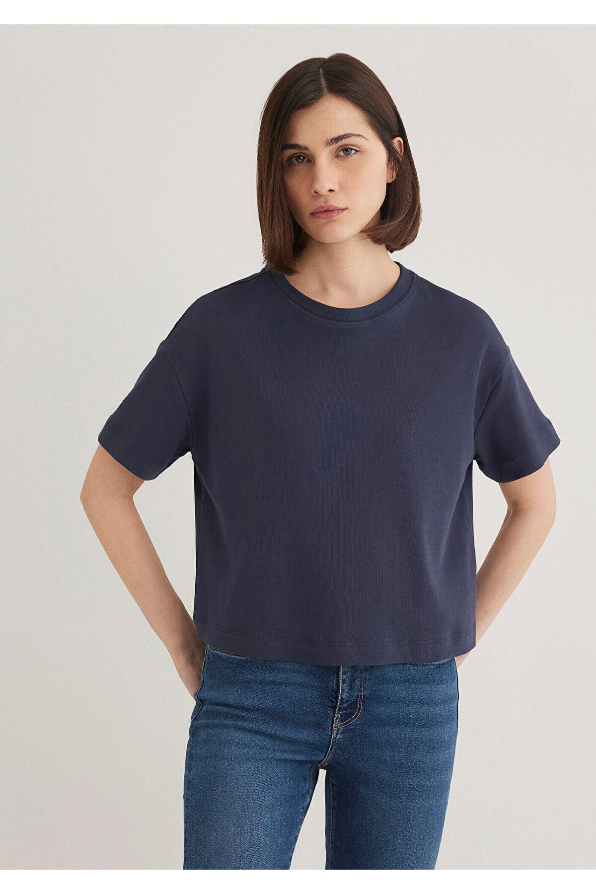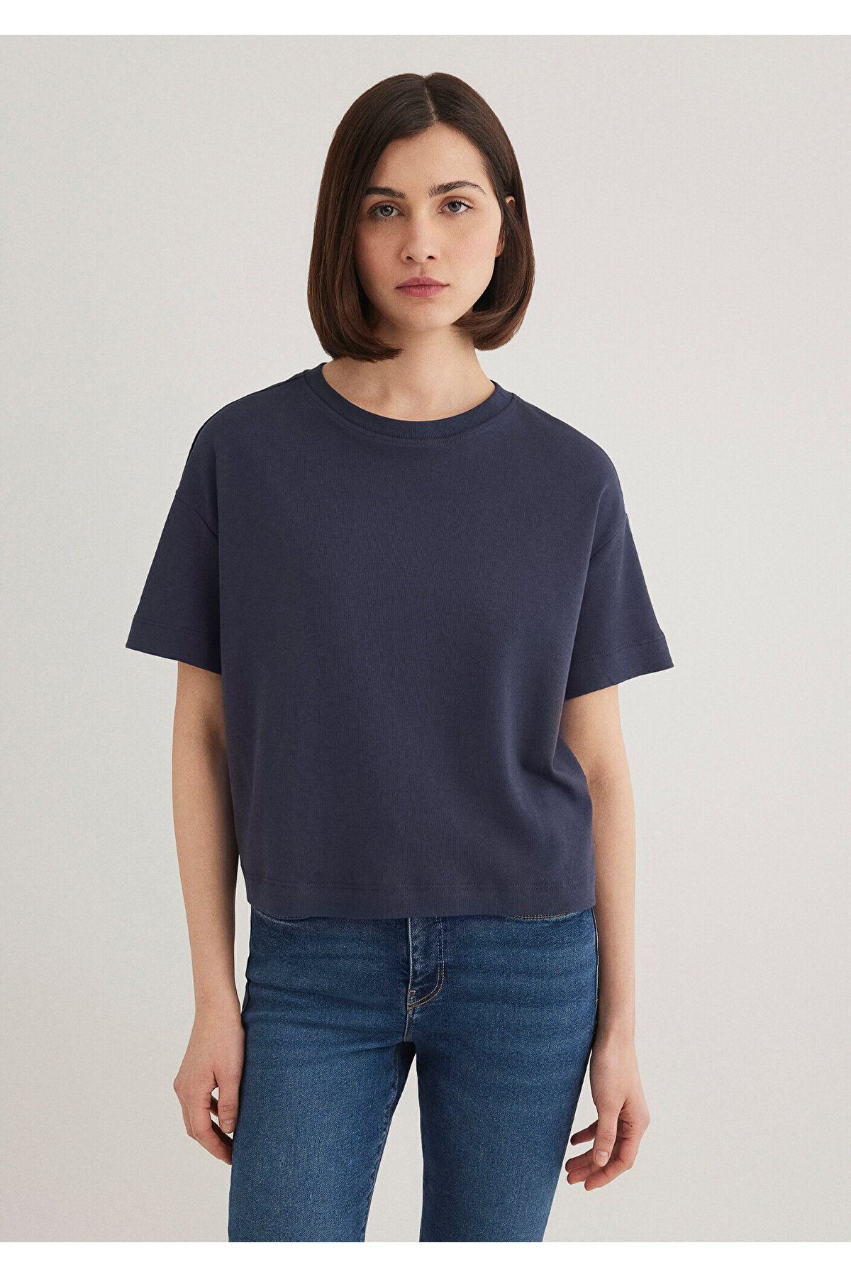 Bisiklet Yaka Lacivert Basic Crop Tişört Boxy Fit 1612708-85315 Bisiklet Yaka Lacivert Basic Crop Tişört Boxy Fit 1612708-85315 L