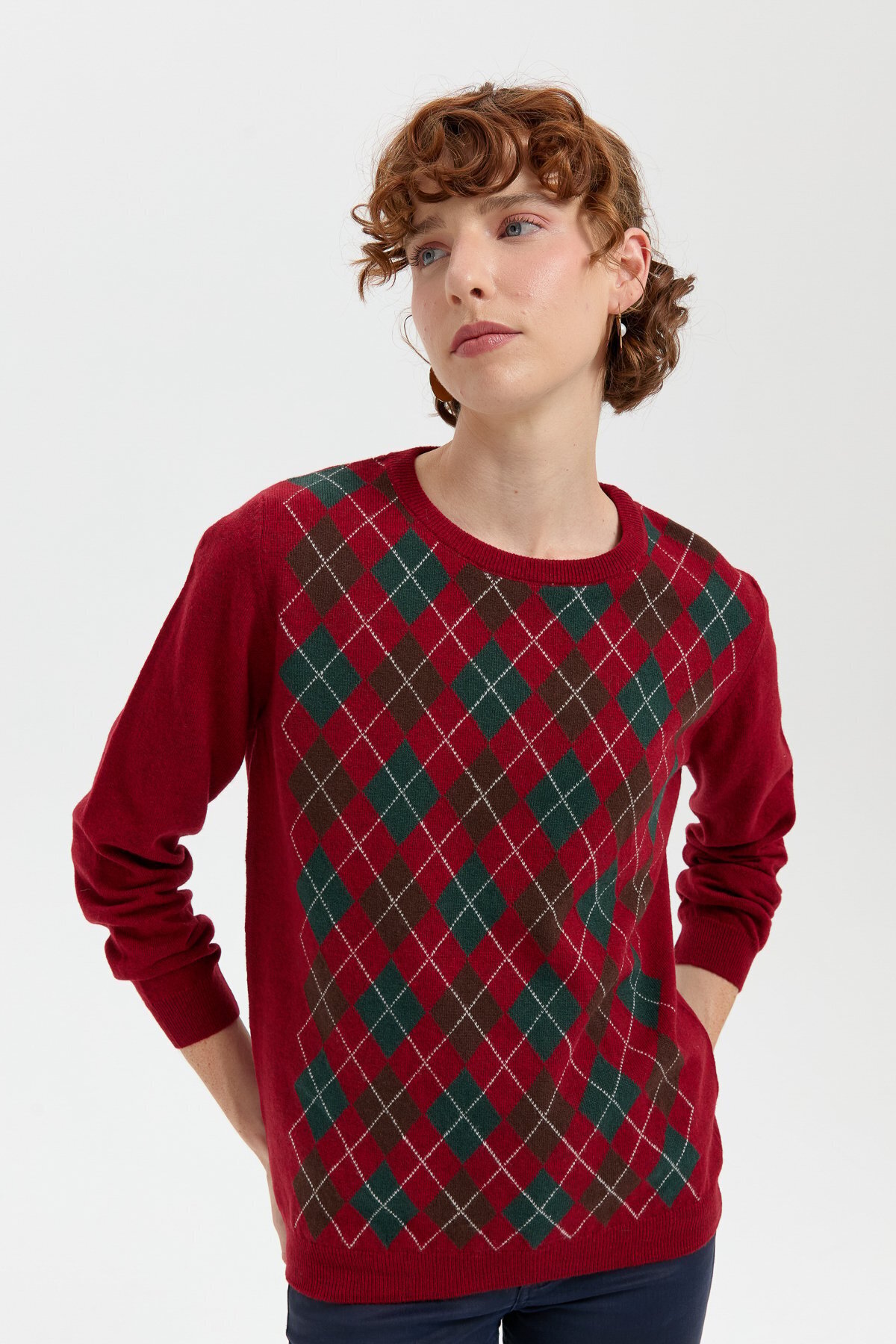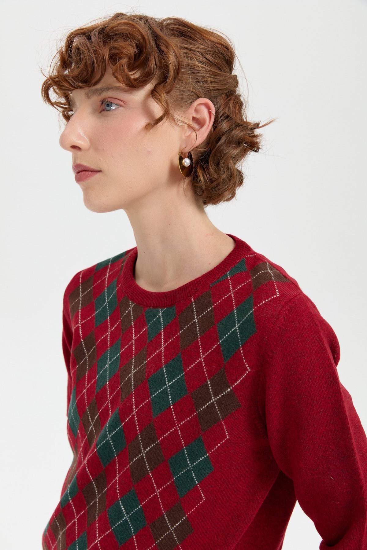 Kadın Sıfır Yaka Önü Baklava Desenli Yün Kazak V.Kırmızı Kadın Sıfır Yaka Önü Baklava Desenli Yün Kazak V.Kırmızı 24035 XL
