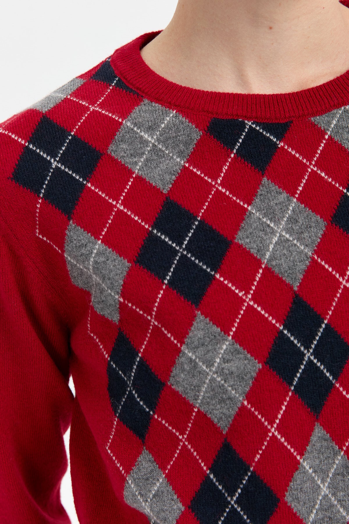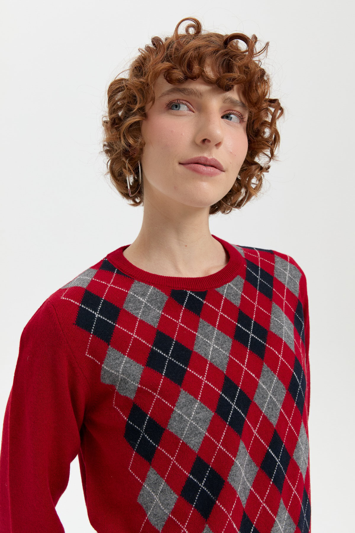 Kadın Sıfır Yaka Önü Baklava Desenli Yün Kazak K.Kırmızı Kadın Sıfır Yaka Önü Baklava Desenli Yün Kazak K.Kırmızı 24035 XL
