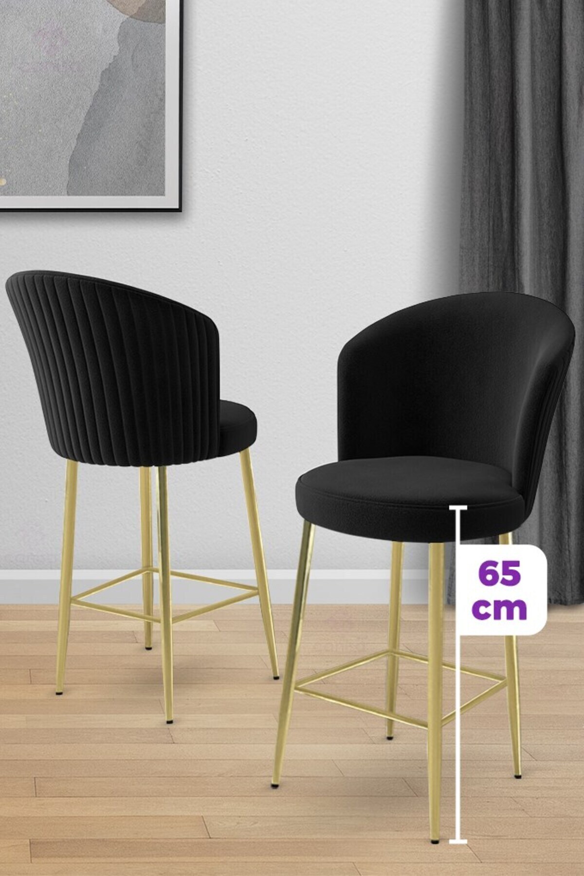Alte Serisi 1 Adet Babyface Kumaş 65 cm Gold Kaplama Ayaklı Siyah Bar Sandalyesi Alte Serisi 1 Adet Babyface Kumaş 65 cm Gold Kaplama Ayaklı Siyah Bar Sandalyesi 22ALTE01GLD تک سایز
