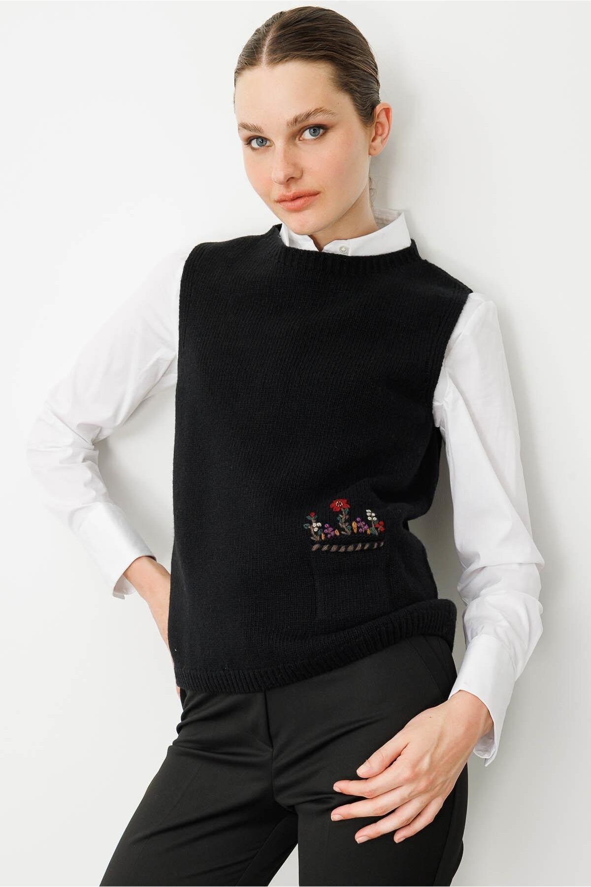 Kadın Sıfır Yaka Dikişsiz Cepli Yün Süveter Siyah Kadın Sıfır Yaka Dikişsiz Cepli Yün Süveter Siyah 24204 XL