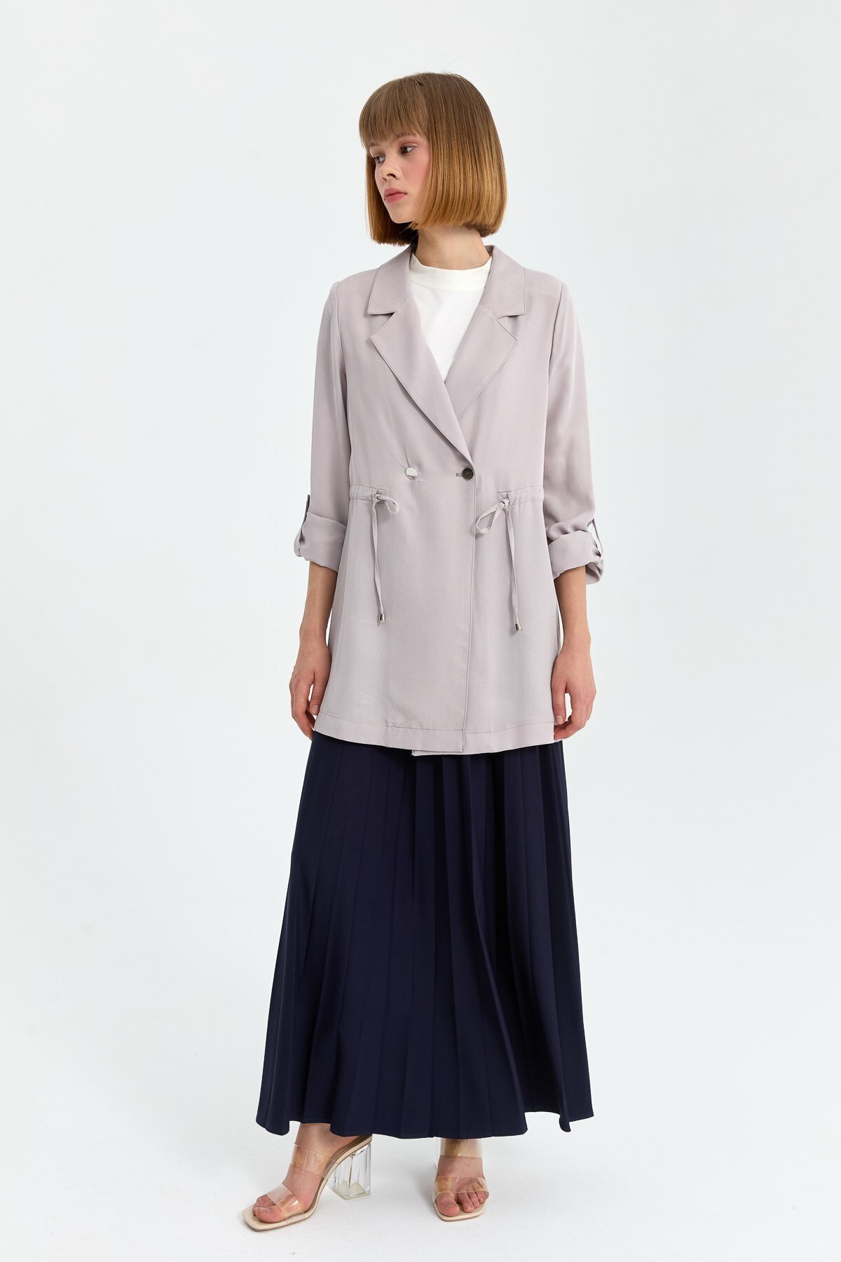 Apolet Detaylı Büzgülü Cupra Ceket Gri Apolet Detaylı Büzgülü Cupra Ceket Gri 241CK4250NH.1 42