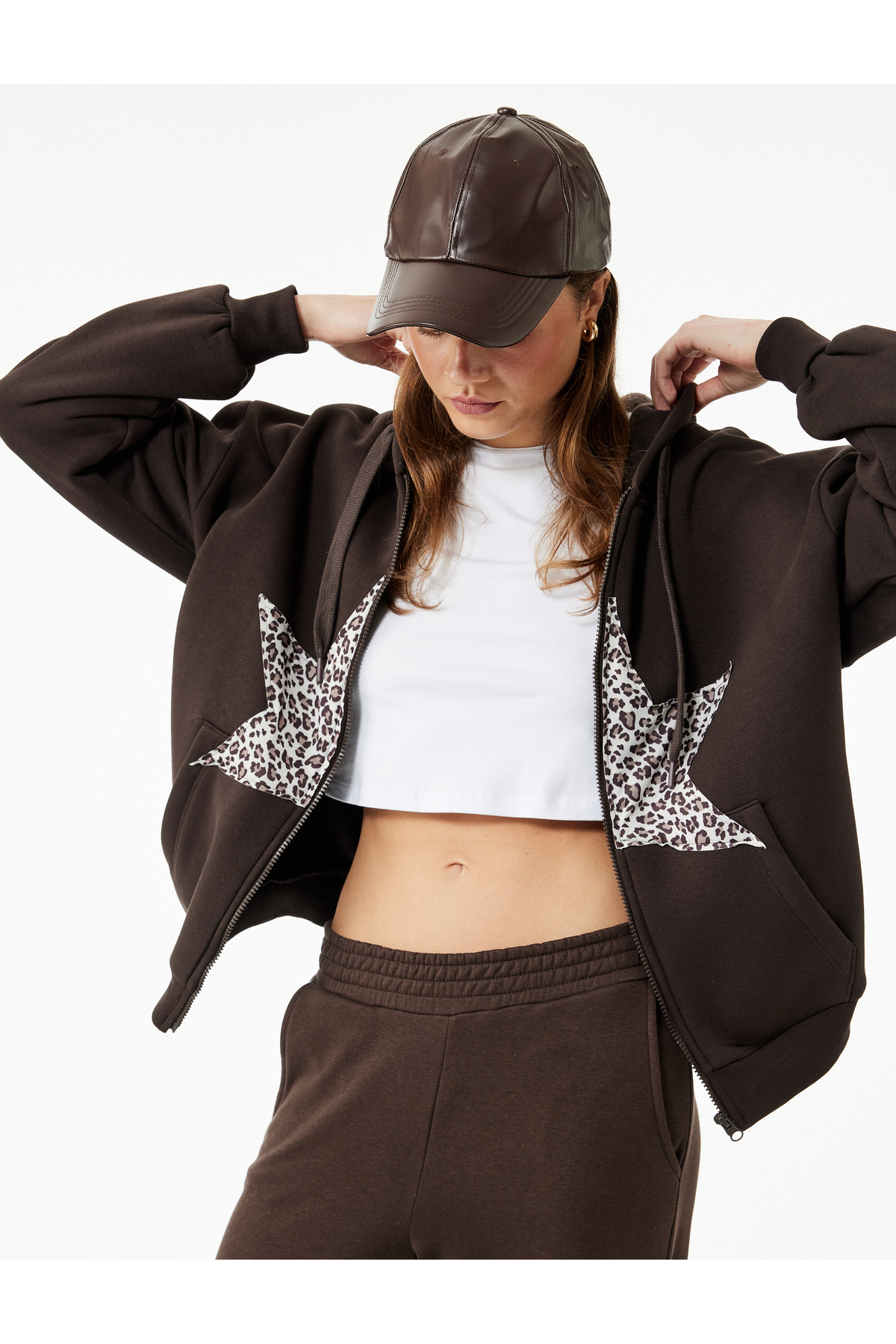Fermuarlı Kapşonlu Baskılı Şardonlu Sweatshirt Fermuarlı Kapşonlu Baskılı Şardonlu Sweatshirt 5WAL10009IK XL