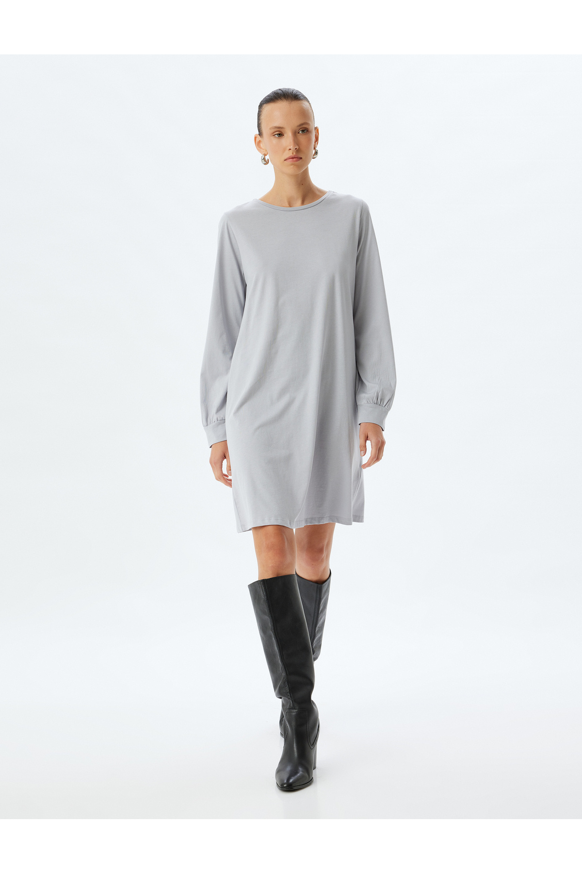 Mini Elbise Manşetli Uzun Kollu Yuvarlak Yaka Pamuklu Mini Elbise Manşetli Uzun Kollu Yuvarlak Yaka Pamuklu 5WAK80119EK XL