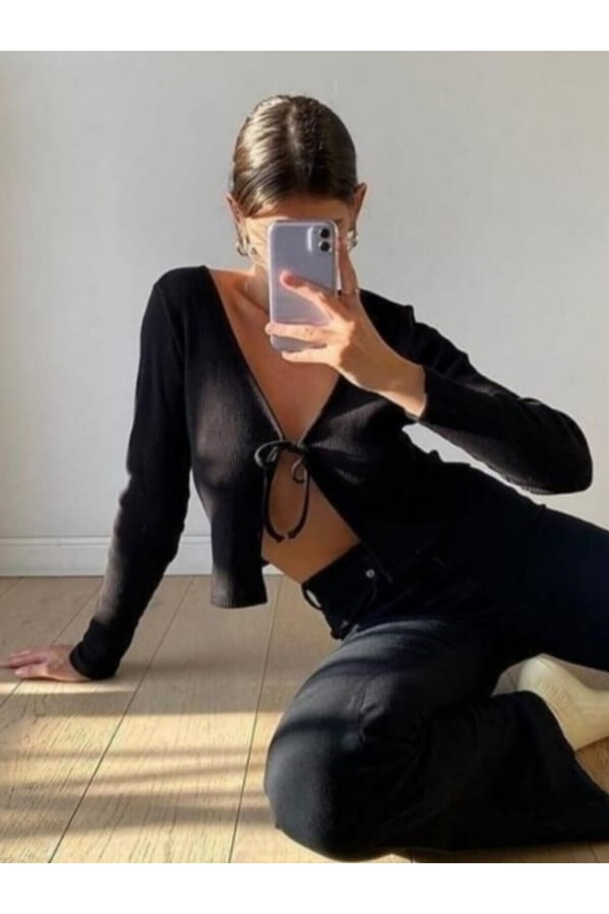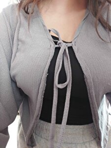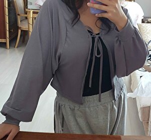 Gri Balon Kol Detay Bağlamalı Crop Hırka Gri Balon Kol Detay Bağlamalı Crop Hırka moodkoldetaycrophrkagri L