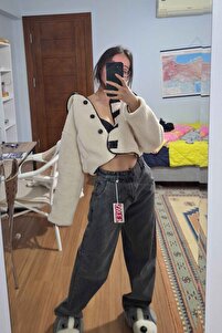 Kadın Siyah Kar Yıkama Yüksek Bel Skater Fit Bol Kesim Baggy Denim Kadın Siyah Kar Yıkama Yüksek Bel Skater Fit Bol Kesim Baggy Denim 1500 34/26