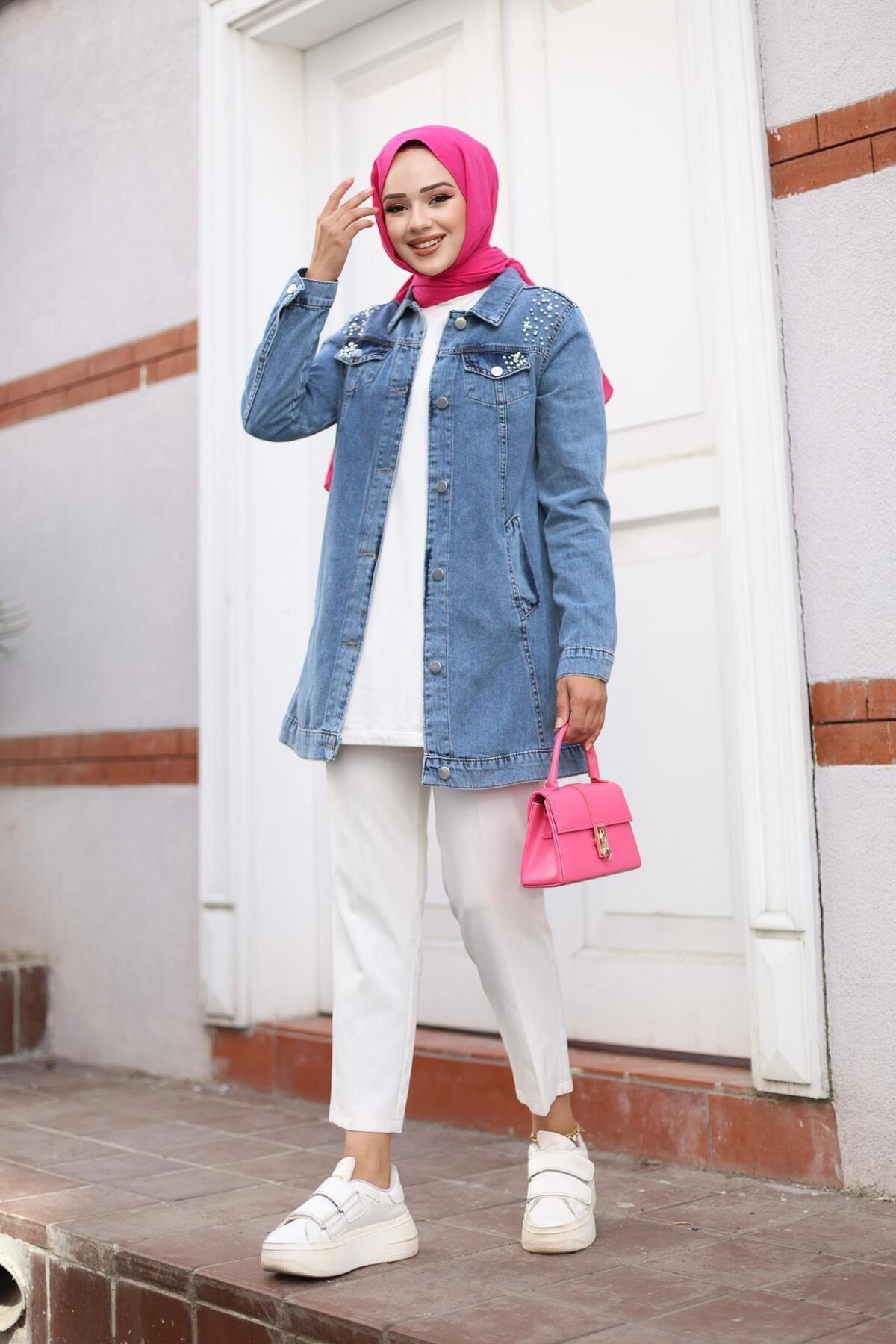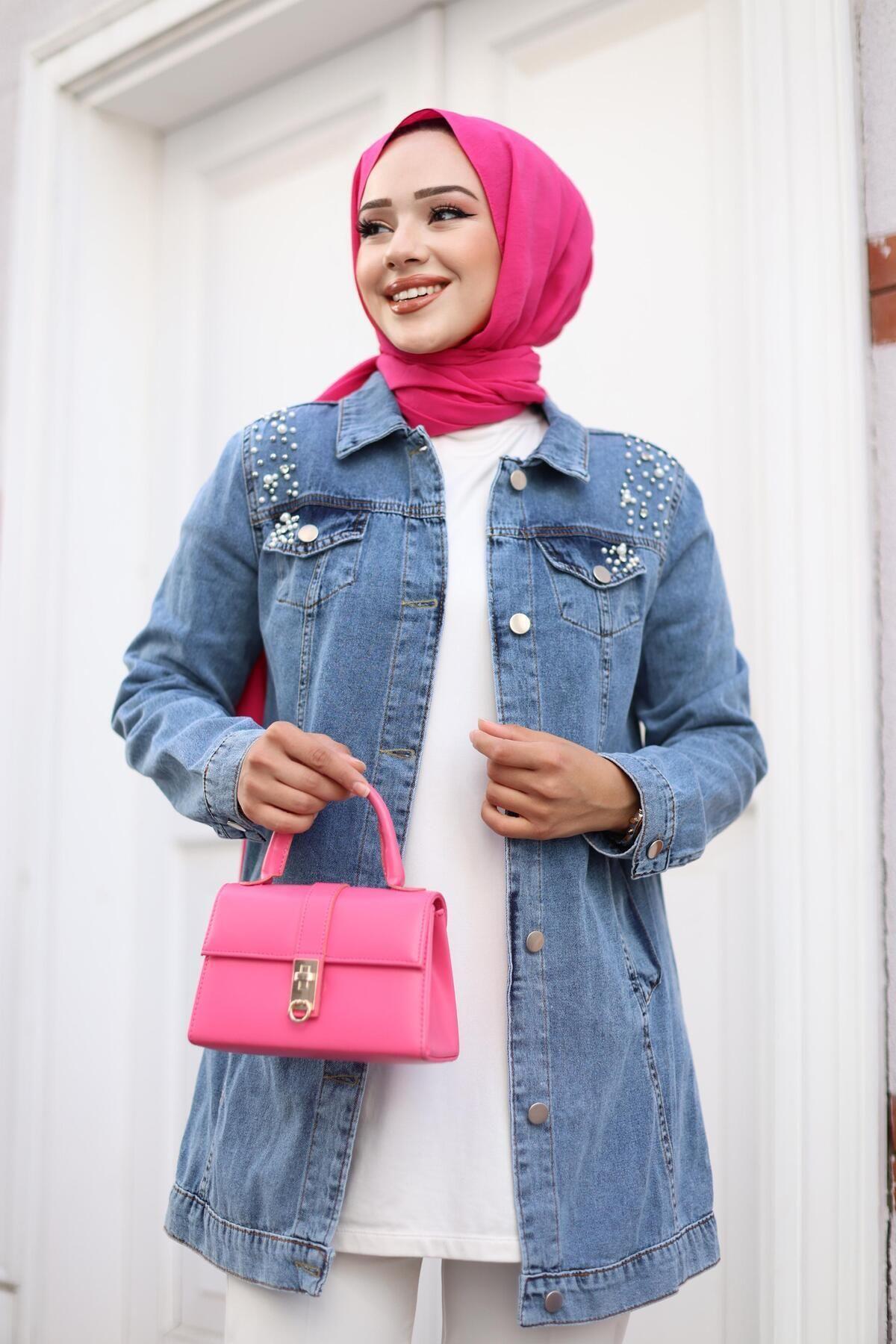 KADIN BONCUK İŞLEMELİ DENİM KOT CEKET KADIN BONCUK İŞLEMELİ DENİM KOT CEKET 7807 48