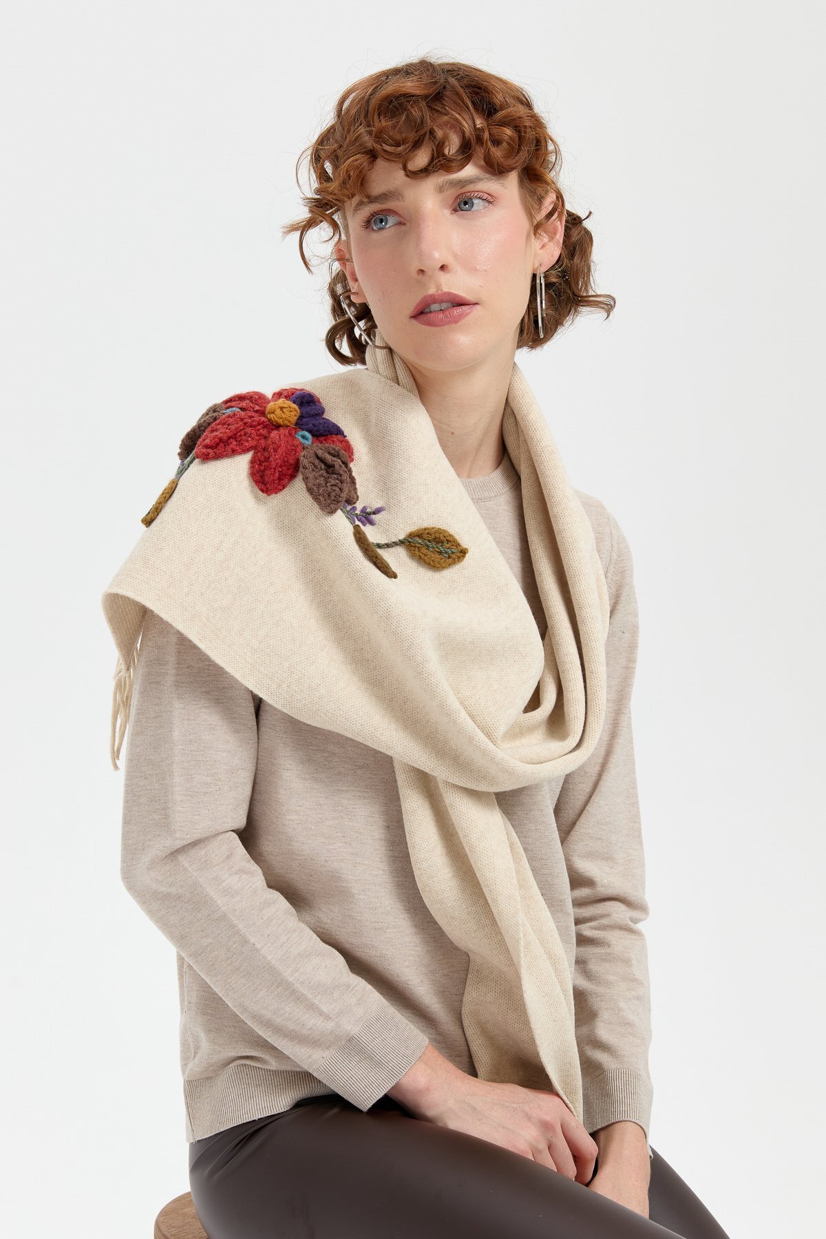 Kadın Örgü Çiçek İşlemeli Püsküllü Kaşkol T.Melanj Kadın Örgü Çiçek İşlemeli Püsküllü Kaşkol T.Melanj TYC992F256A1961308 Standart