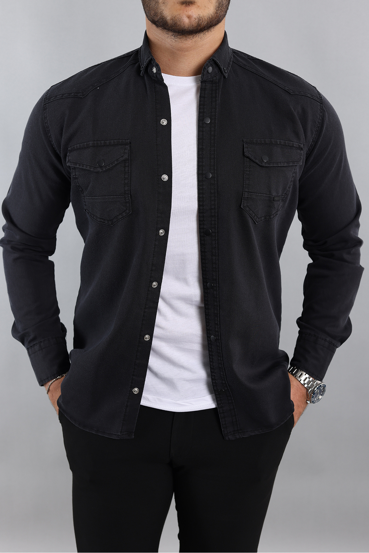 Slim Fit Erkek Kot Gömlek Siyah Slim Fit Erkek Kot Gömlek Siyah yxcgömlek XXS-XS