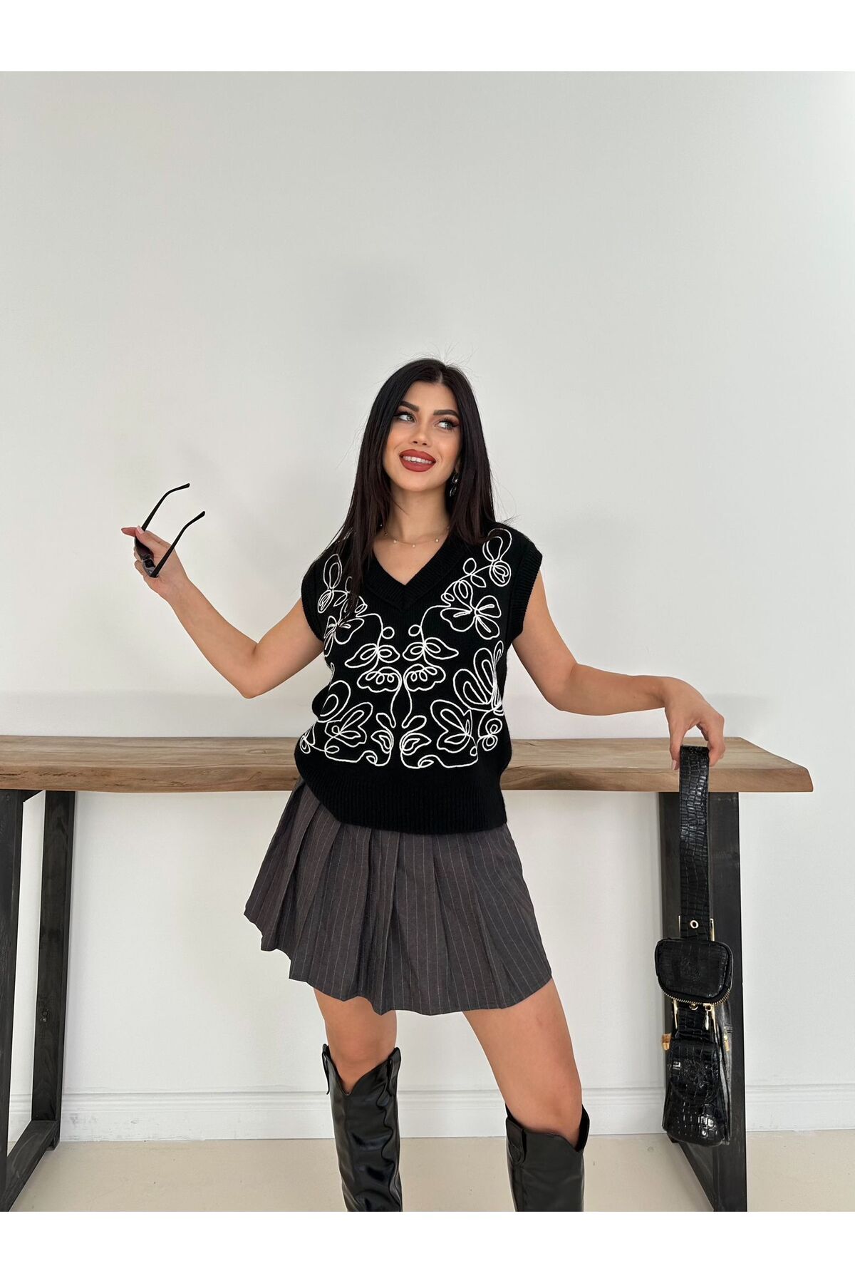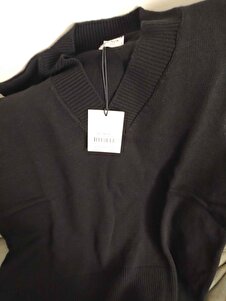 V Yaka Oversize Siyah Süveter V Yaka Oversize Siyah Süveter 24W20005-1001 L